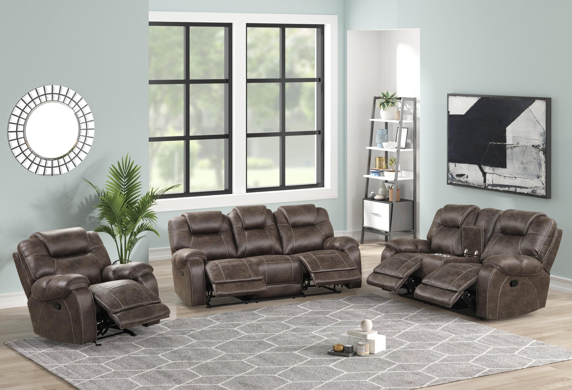 Our Madrid 3-Piece Reclining Chocolate Leather Sofa Set. Immerse yourself in the sumptuous experience of relaxation as you sink into the plush, chocolate-colored recliners. the Madrid Chocolate Brown Loveseat Set delivers an indulgent escape right in the heart of your home.