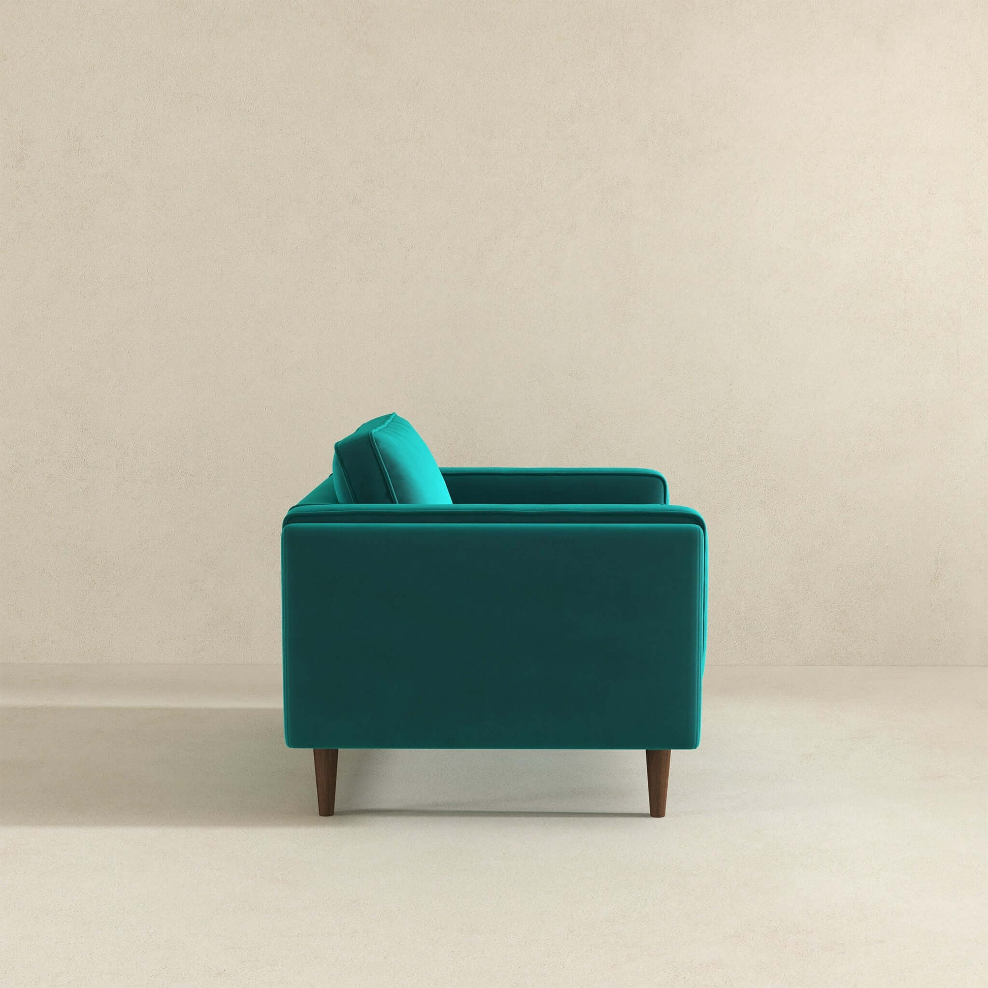 Add an extra spot to the den or living-room for movie nights or accent your master suite ensemble with the Amber Mid-Century Modern Armchair. Founded atop four walnut-finished legs, this piece is crafted with a solid wood frame, high-density foam padding which lends comfort to the seat. Upholstered in durable, high-quality velvet&fabric, this tasteful piece features elegant square arms and fully padded back cushion for great support. Can be cleaned with a non-abrasive cleaning solution followed by a quick microfiber cloth. Removable legs allow for simple delivery for tight spaces. Available in a variety of timeless colors, you're sure to find something that matches your decor.