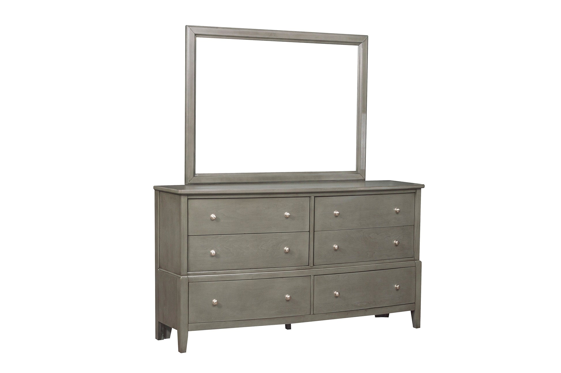 With transitional styling that is at home in a number of decorative environments, the Cotterill Collection will be a versatile addition to your bedroom. The gray finish, over birch veneer, dramatically enhances the wood grain of the mirror’s frame.