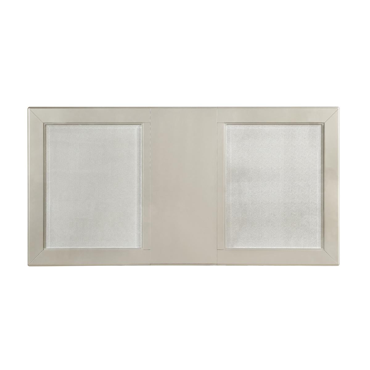 Blending traditional lines with modern glamour is the Crawford Collection. Finished in an eye-catching silver, the dining table will be a dramatic addition to your home’s dining room. Cabriole legs and insert glass panels lend traditional accent.