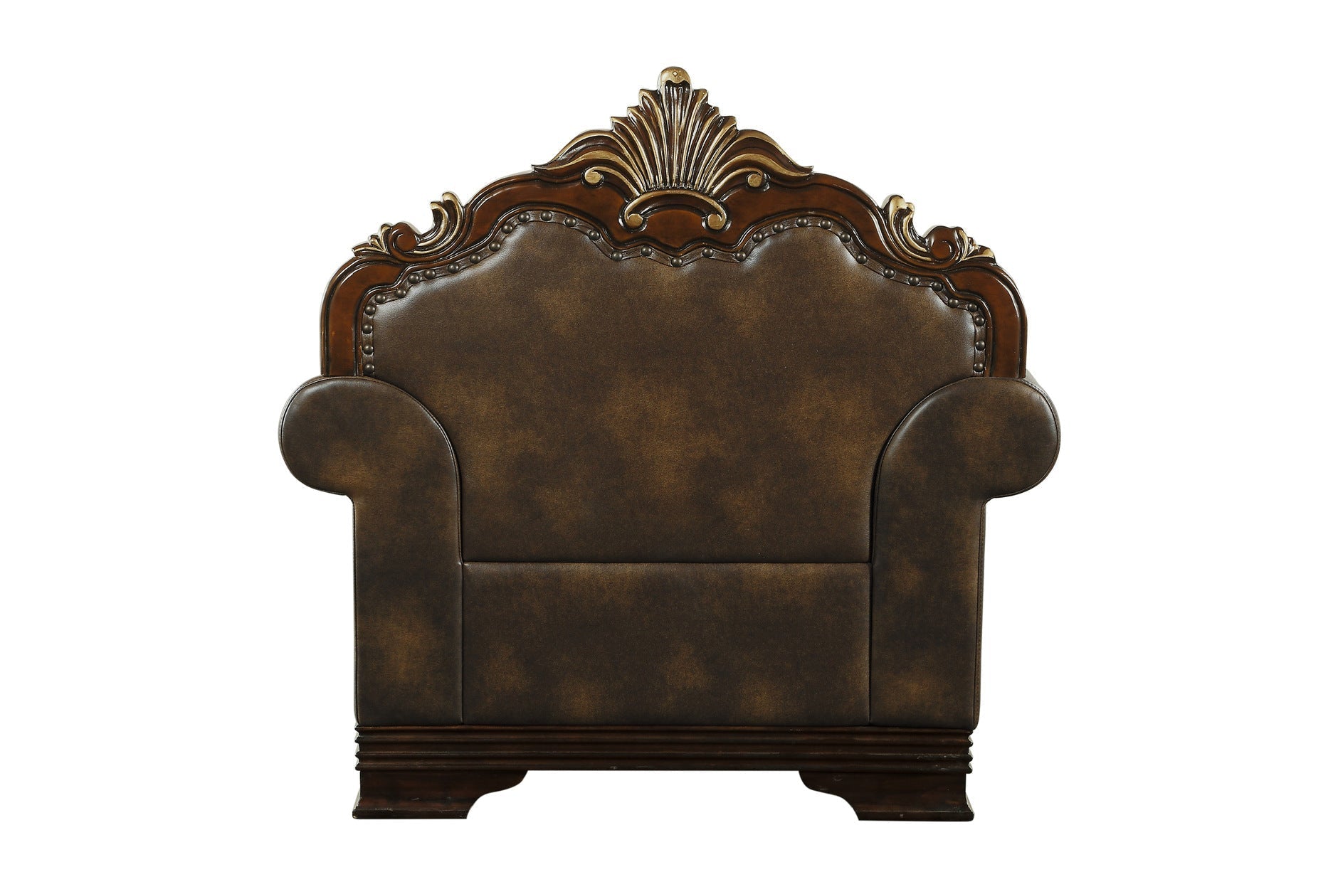 Elegantly designed for the traditional home, the Croydon Collection masterfully blends classic touches to create a seating offering that will be the perfect fit for your living room. Carvings are finished in a dark cherry and feature gold tipping for an added touch of elegance. The show wood frame defines the profile of the chair.