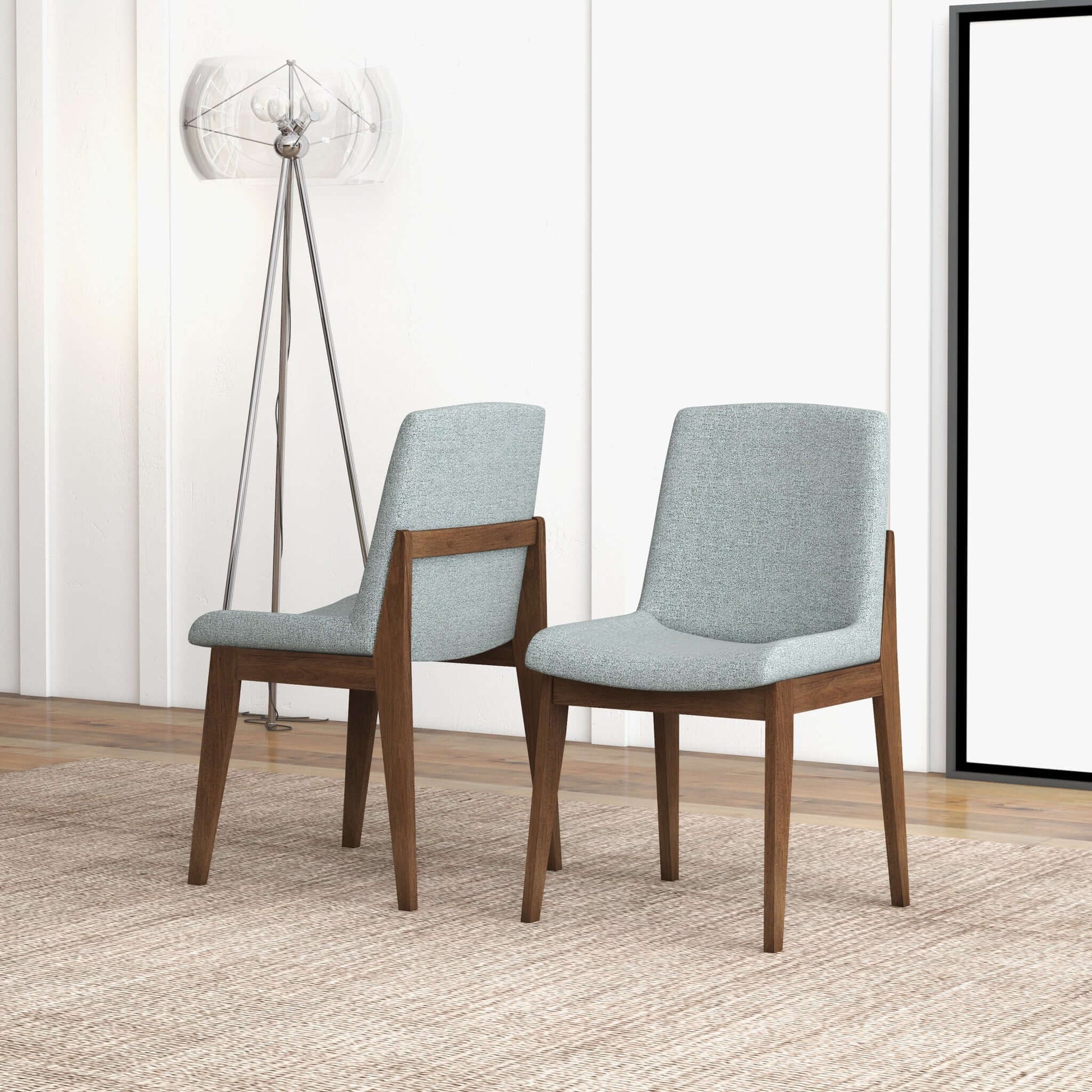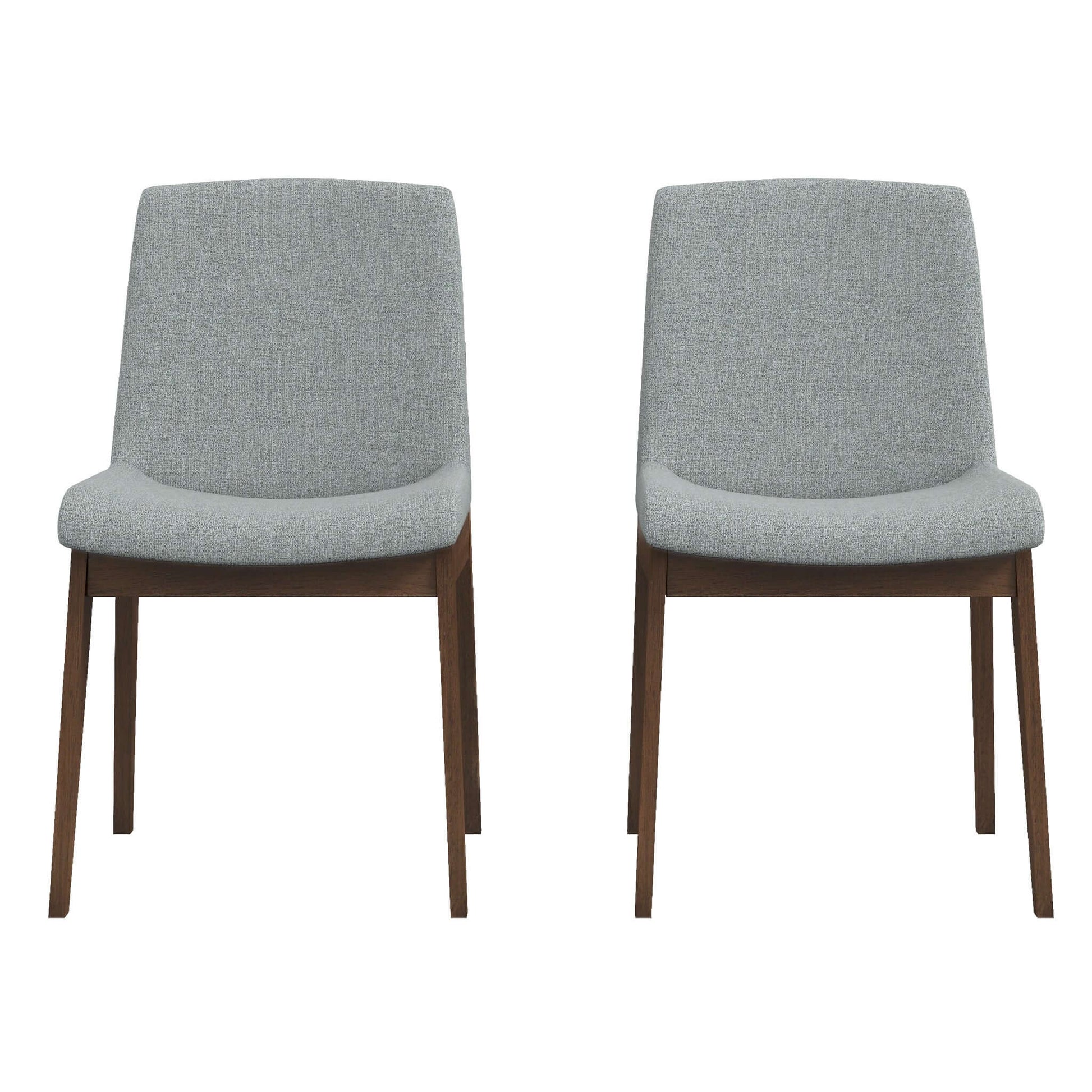 Indulge in the iconic elegance of our set of two Danish-inspired Crystal dining chairs. Designed by one of Denmark's most prolific chair designers, this chair showcases a unique style that effortlessly blends simplicity and sophistication. With a durable grey fabric, foam cushion, and exquisite walnut wood, it offers both style and comfort for any home environment.