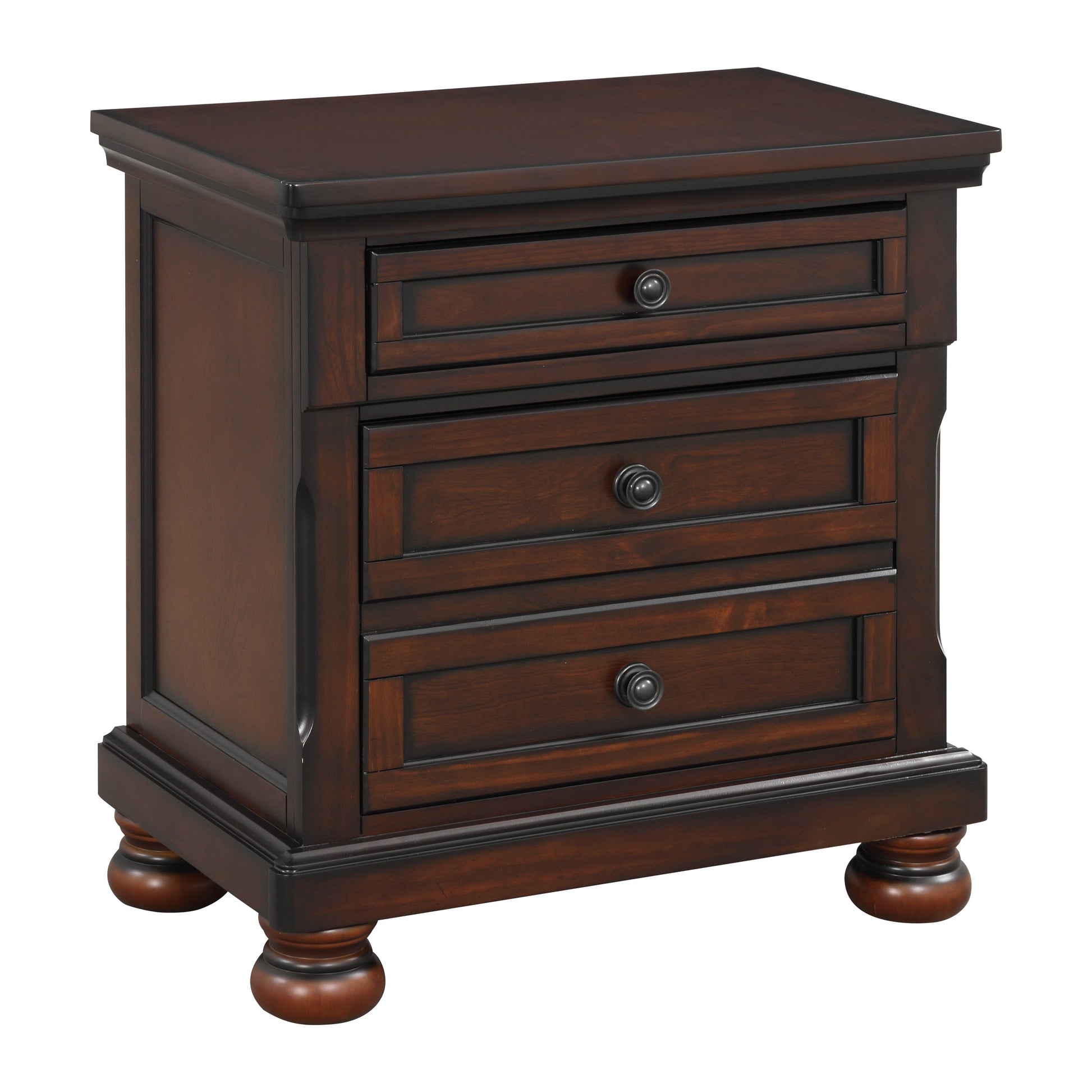 A classic addition to your transitional bedroom will be the Cumberland Collection. Traditional accents such as, the bun feet that support the nightstand and rich brown cherry finish on birch veneer and selected hardwood, blend with framing and lines that compliment your personal style. Hidden drawer storage within the nightstand is a clever way to hide your valuables.