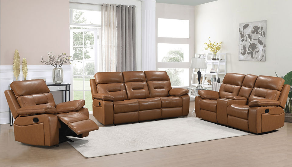 Experience luxury and comfort with the Dallas Leather Camel Sofa Set. Crafted with precision and designed to elevate your living space, this Leather sofa camel combines style, durability, and comfort seamlessly. From the sturdy wooden frame to the premium camel leather upholstery, every detail is thoughtfully designed to provide a Camel leather reclining sofa set that exudes elegance and sophistication.