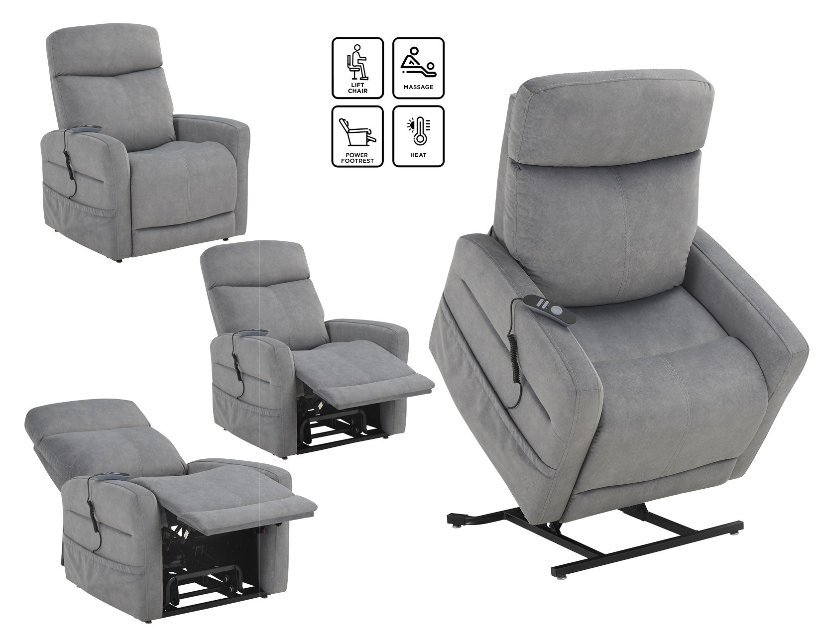 Indulge in the dual benefits of the Danville Lift Chair, where the luxury of heat and massage meets the convenience of lift functionality. With a state-of-the-art heating system and a trio of massage options tailored to your preference, this chair is a sanctuary of relaxation. Effortlessly rise from your seat with the smooth and dependable lift mechanism, operated by a user-friendly remote that also controls your massage and heat settings. Tucked into a side pocket for easy access, this chair is the epitome of comfort and convenience, all wrapped in sumptuous gray polyester fabric. The Danville Lift Chair is not just a seat, it’s a seamless blend of relaxation and independence.