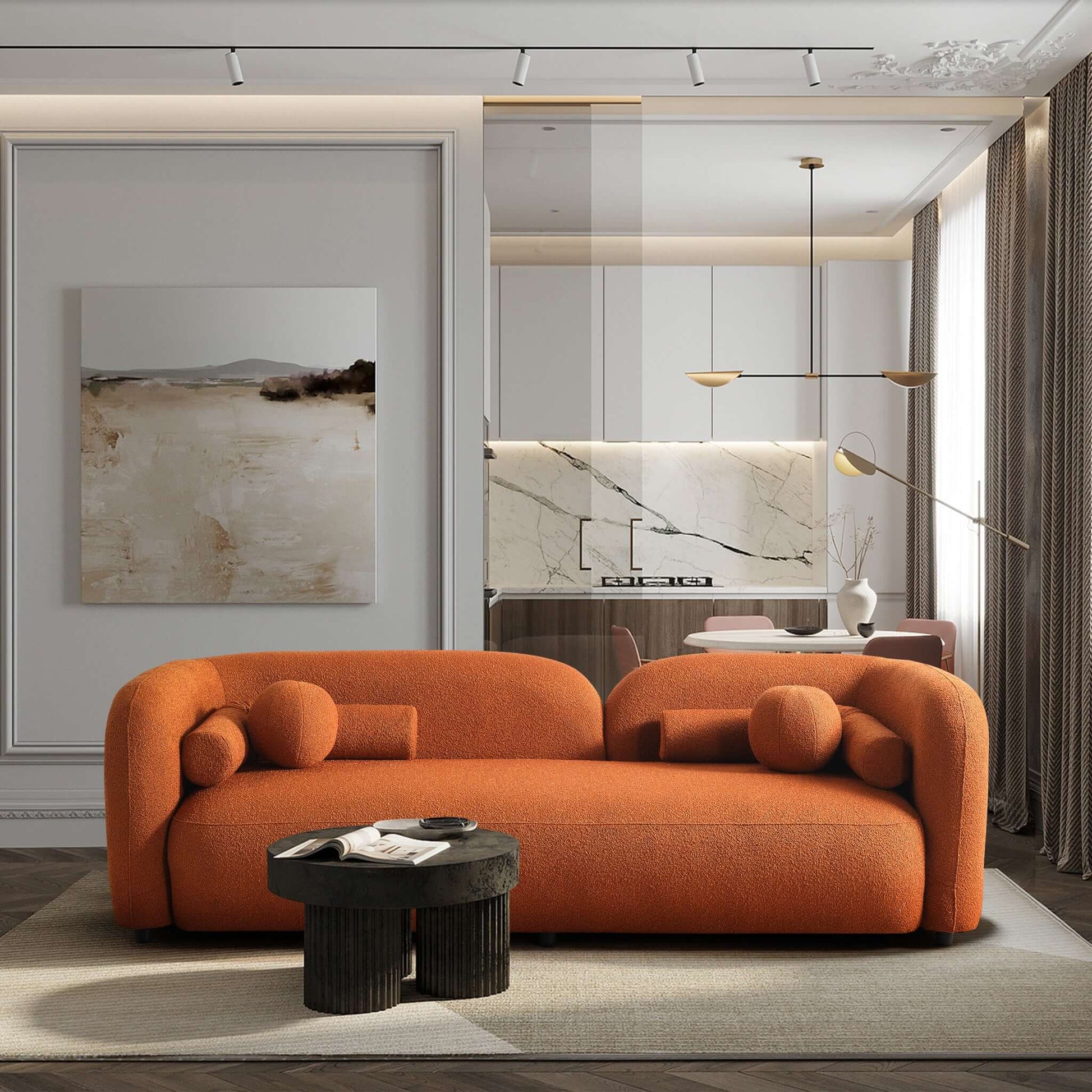This comfortable living room couch will provide a fresh and pleasing look to your space and will be the center of attention thanks to its design. This designer style french boucle sofas creates an inviting space for your guests or family entertainment activities. Combining topquality craftmanship and highdensity foam, this set will provide you with great comfort and undoubtedly become the centerpiece of your aparment , living room, den, urban loft, condo. All pieces are made of top quality fabric and can be cleaned with a microfiber cloth. Removable legs allow for simple delivery for tight spaces. Easy assembly, everyday use comfortable, affordable and durable quality boucle fabric couches.