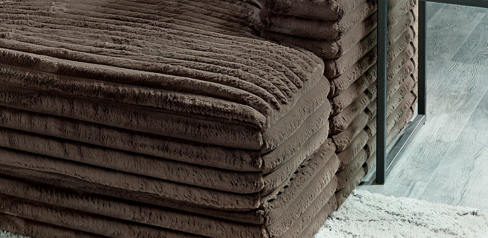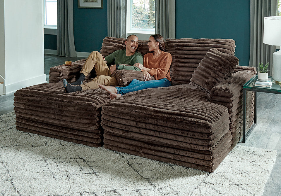 One of the first things you'll notice about the Comfrey Sofa with double chaise lounge is its rich chocolate color. This deep, warm hue adds a touch of luxury and elegance to your living room Chocolate brown sofa. while the high-density foam cushions maintain their shape and comfort over time. The fabric is not only soft to the touch but also designed to withstand daily wear and tear, ensuring your sofa looks and feels great for years to come Double Chaise Sofa.