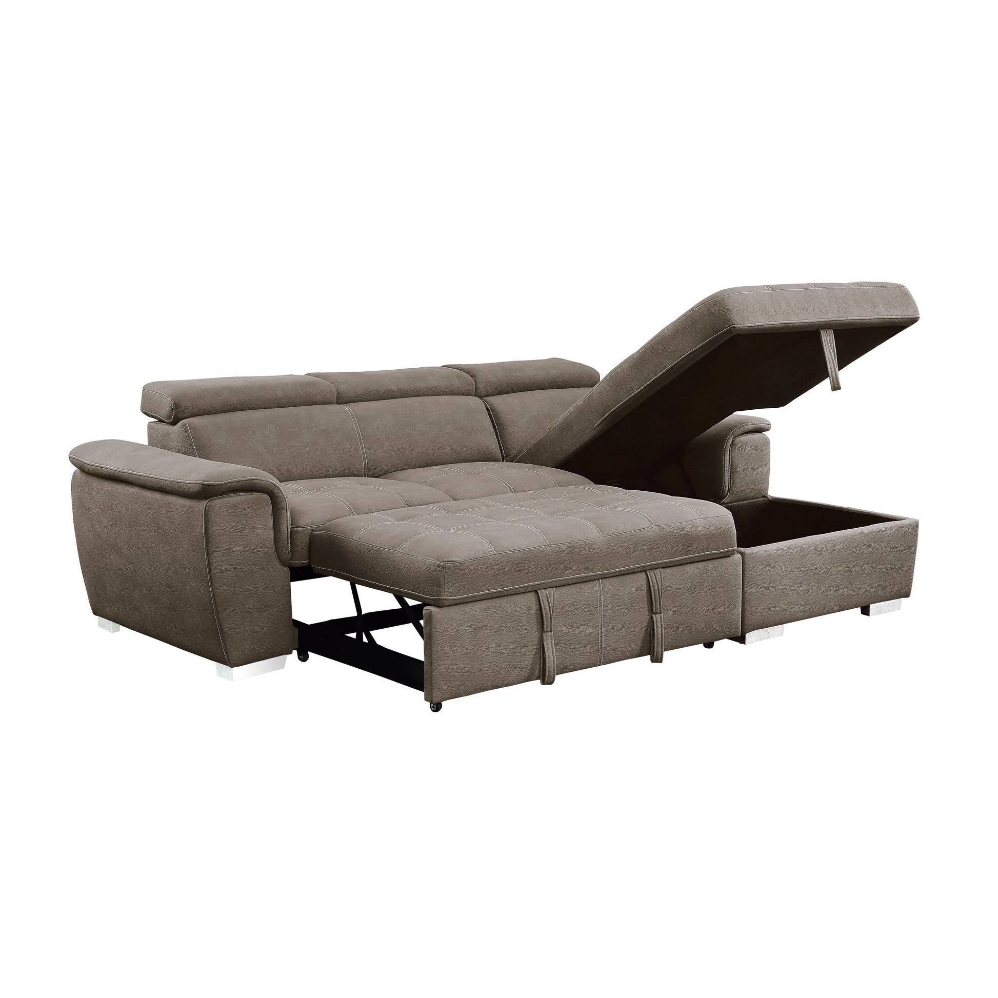 Providing a flexible option for relaxation, sleep and storage, the Ferriday Collection will be a stylish and functional addition to your living room. Under seat storage is revealed with the pull of a tab on the end chaise while the lower portion of the seating configuration pulls out to reveal a pop-up trundle that creates a bed space making for a relaxing environment with minimal effort. The collection is covered in taupe microfiber, presenting as a neutral accent to your casual living room.