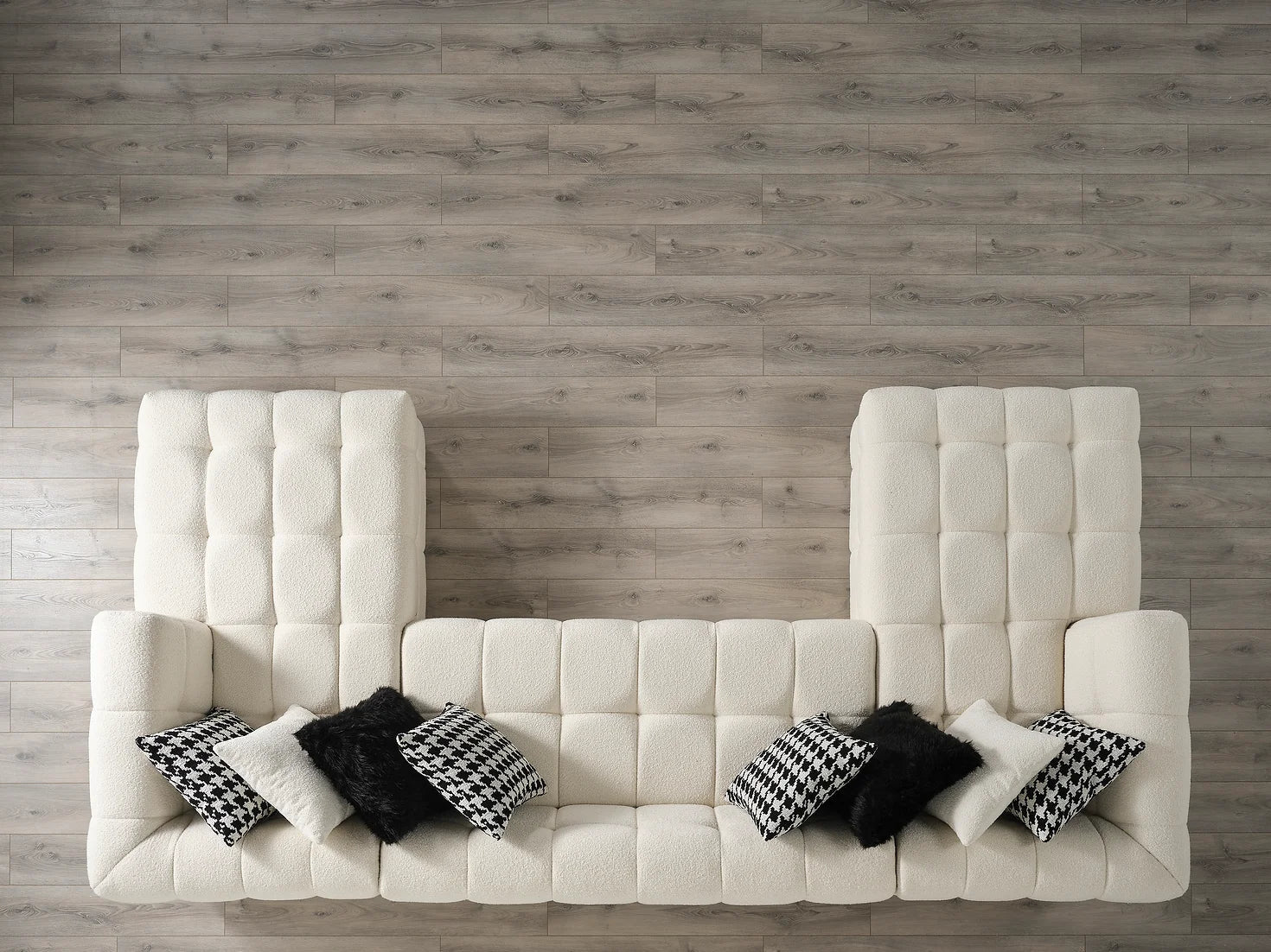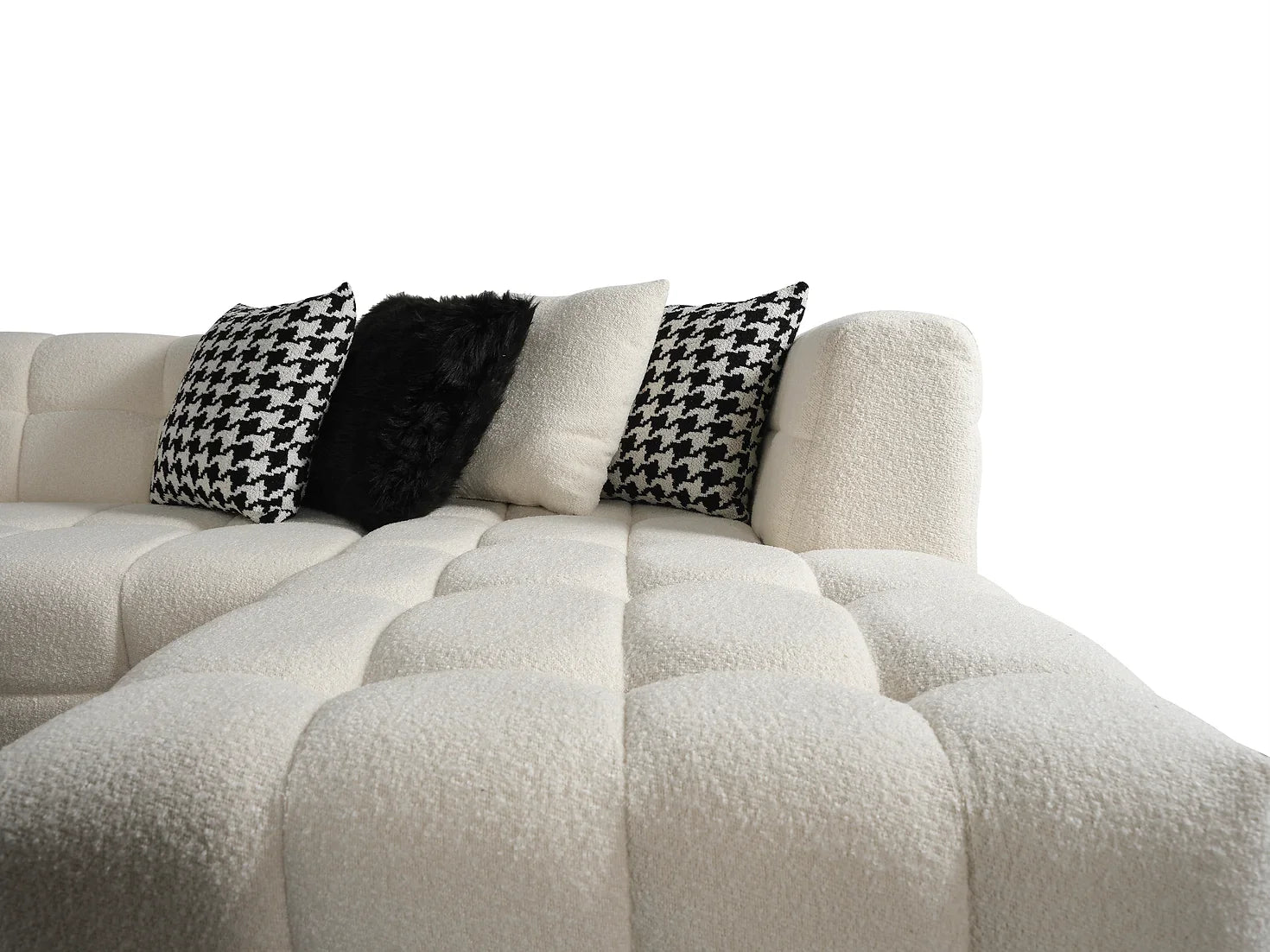 The Florida Sectional sofa is a luxurious addition to any living space. Expertly crafted in a boucle fabric and finished with a classic cream color, this oversized sectional will bring a touch of elegance to any home. Experience luxury in comfort with this perfect piece of furniture.