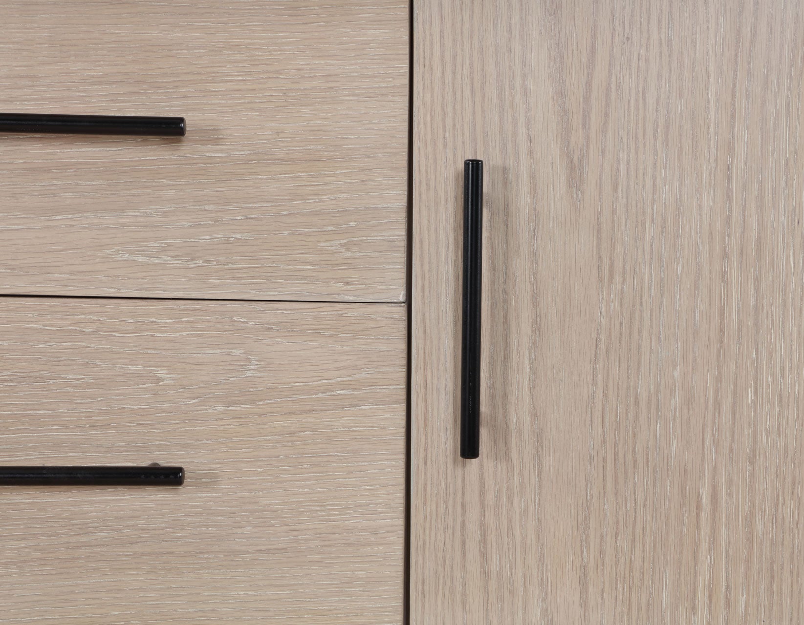 Contrasting Accents: Electro-static coated black hardware? A contrasting siren in a sea of washed oak, calling attention yet blending seamlessly.