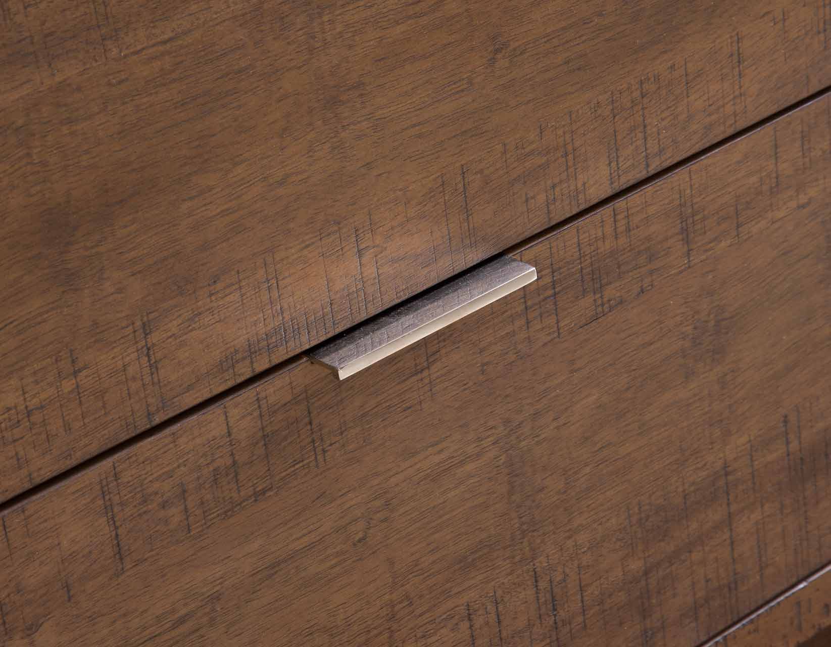 The Garland Server marries a modern silohuette with a relaxed, lightly distressed toffee finish in a dining side piece with the perfect casually elegant style of today’s dining rooms. A modern plinth base and tastefully appointed satin brass hardware creates extremely clean lines that displays the natural beauty of the wood expertly. Three drawers and a door allow for plenty of storage base of any dining area in a neat, beautiful package that can stand on its own or can be paired with the matching Garland dining collection.