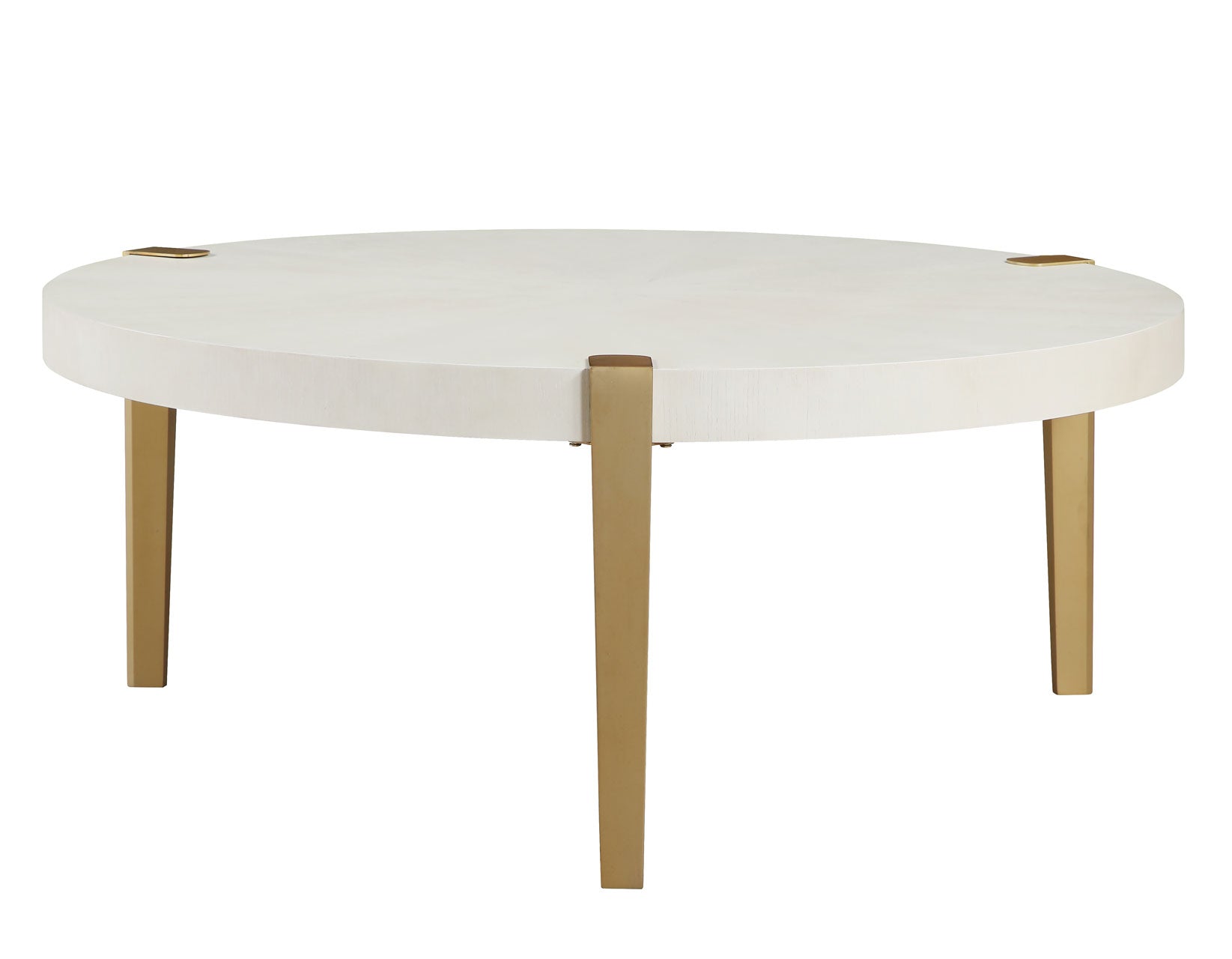 The Gracie 3-Piece Table Set, featuring a 48-inch round cocktail table and two end tables, blends modern industrial charm with elegant design. The cocktail table stands proudly on three satin gold-finished metal legs, adding a bold, contemporary look. Its round silhouette with a washed white finish showcases oak veneers in a mesmerizing sunburst layup. The matching end tables complement the cocktail table’s light and airy aesthetic. Enhancing any space with their impressive design, this set combines style and functionality, transforming your living area into a sophisticated haven.