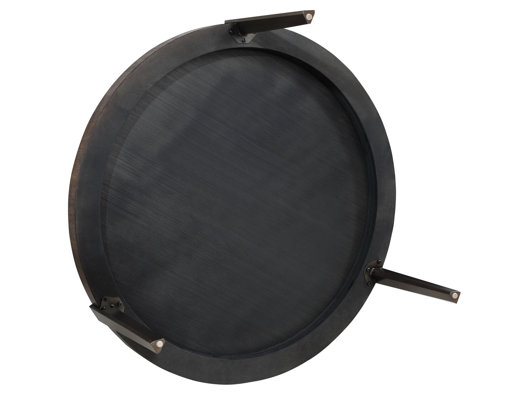 Elegant and commanding,, the Gracie White Cocktail Table is a stunning blend of modern industrial charm and elegant design. This elegant and commanding 48-inch round table stands proudly on three satin gold finished metal legs, geometrically shaped and exposed on top, adding a bold, contemporary look. Its round, flowing silhouette with an espresso finish showcases oak veneers in a mesmerizing sunburst layup. Rich and inviting, this distinctive piece enhances any space with its impressive size and striking design, bringing both style and functionality to your room. Ideal as a centerpiece, it effortlessly combines beauty and utility.