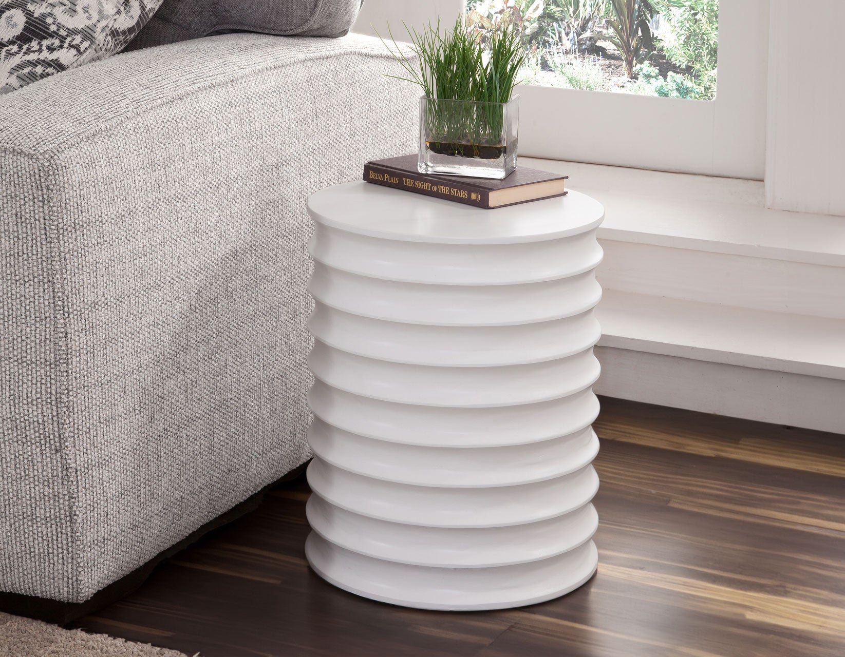 The Griffin Side Table brings a unique and eclectic touch to any space with its wavy design, offering a delightful pop of style. Perfectly sized at 14 inches round and 18 inches high, it’s compact enough to fit anywhere while still making a significant impact on the room’s aesthetics. Whether serving as a charming side table or a chic bedside companion, Griffin stands out in its elegant white finish.