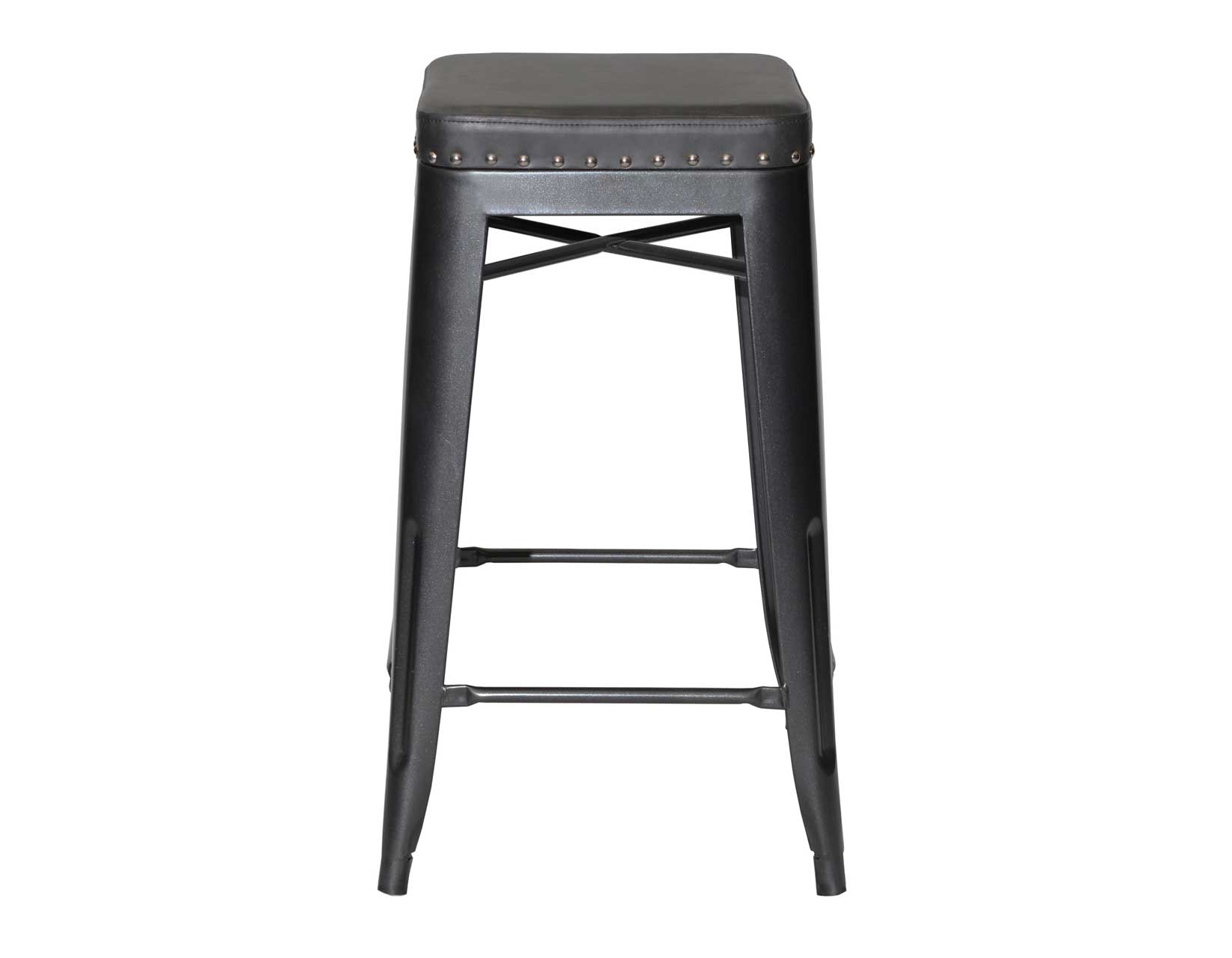 Sleek style in a compact design is the hallmark of this Backless Bar Stool that fits 42-Inch high counters. An upholstered granite leatherette seat ensures a comfortable seat while details like nickel nailhead and box seat construction make sure the stool stands out! A great addition to industrial, farmhouse or transitional interiors, the fully welded steel frame makes for a sturdy, durable stool that requires no assembly.