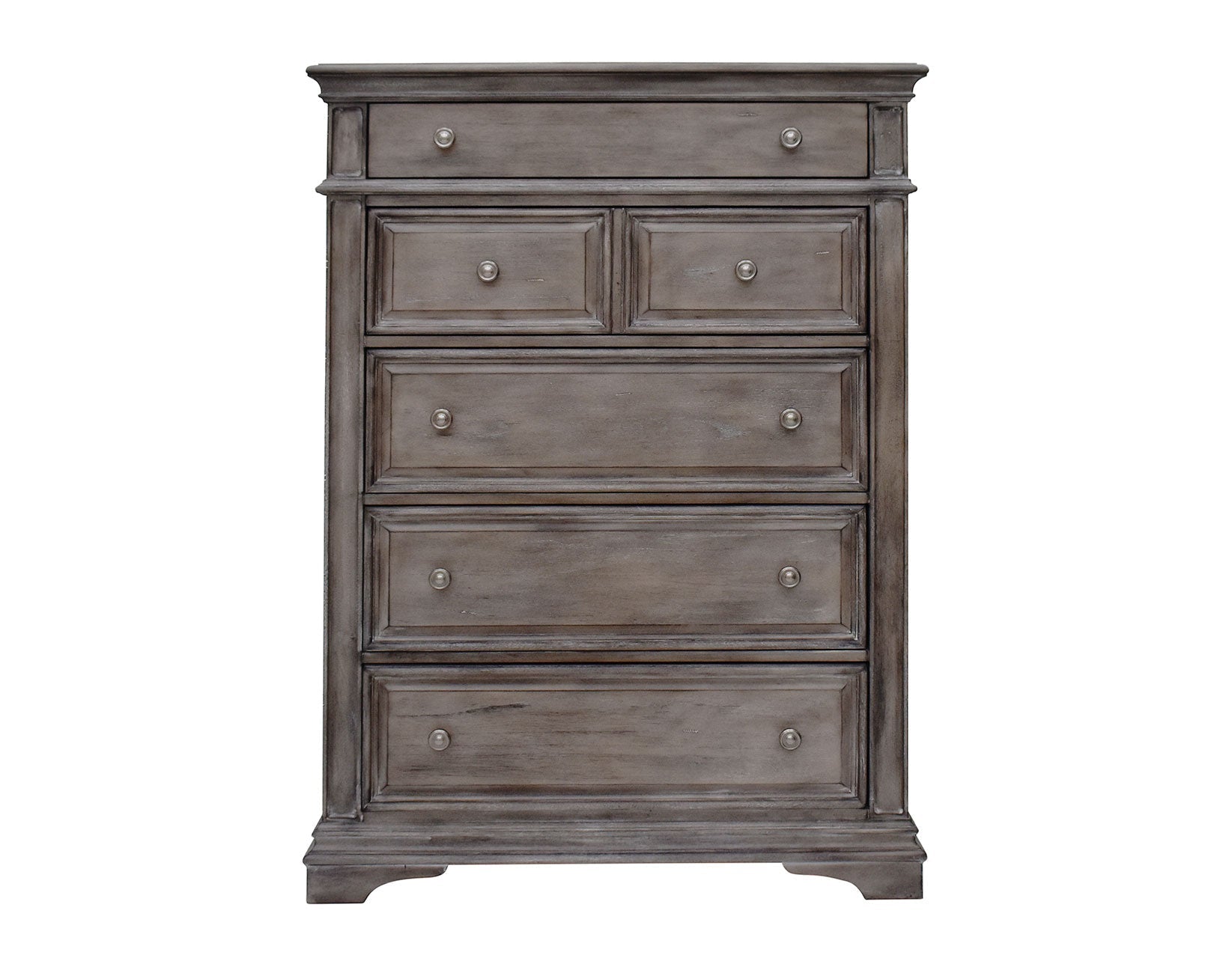 Vintage styling in a classically styled bedroom collection. Highland Park features a waxed driftwood finish complemented beautifully with a tufted fabric headboard. Storage pieces include chest, dresser, and nightstand to complete your bedroom.