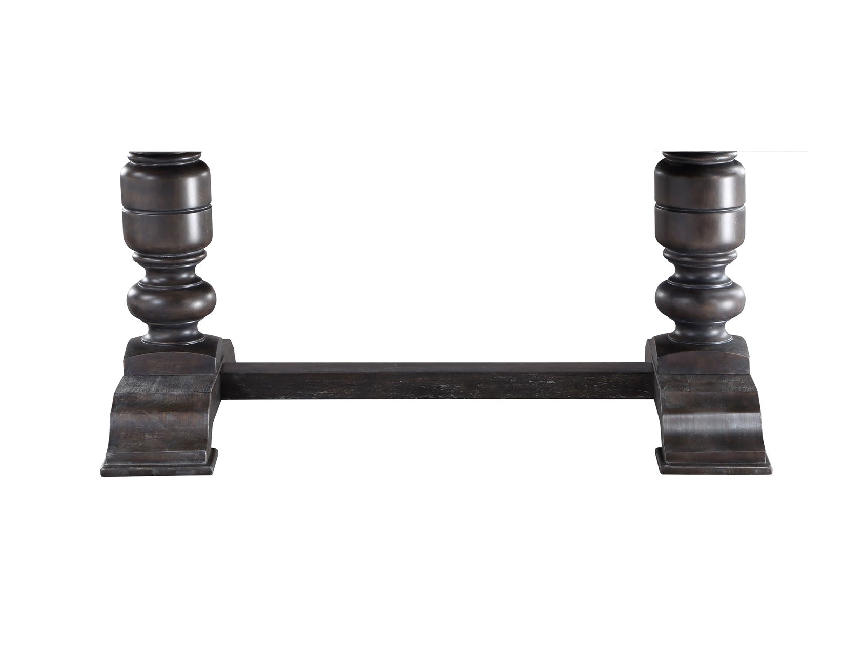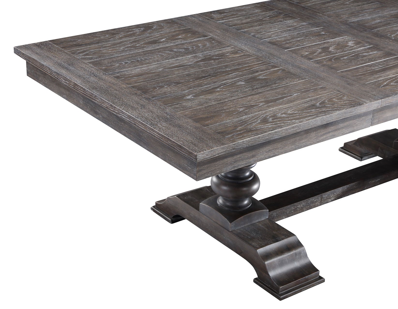 Classic styling with a modern twist, Hutchins offers large scale dining in a unique package. A dusty espresso finish offers neutral styling that combines with a traditionally shaped double pedestal table. Pair with the modern Ladderback Side Chair for a special dining collection.