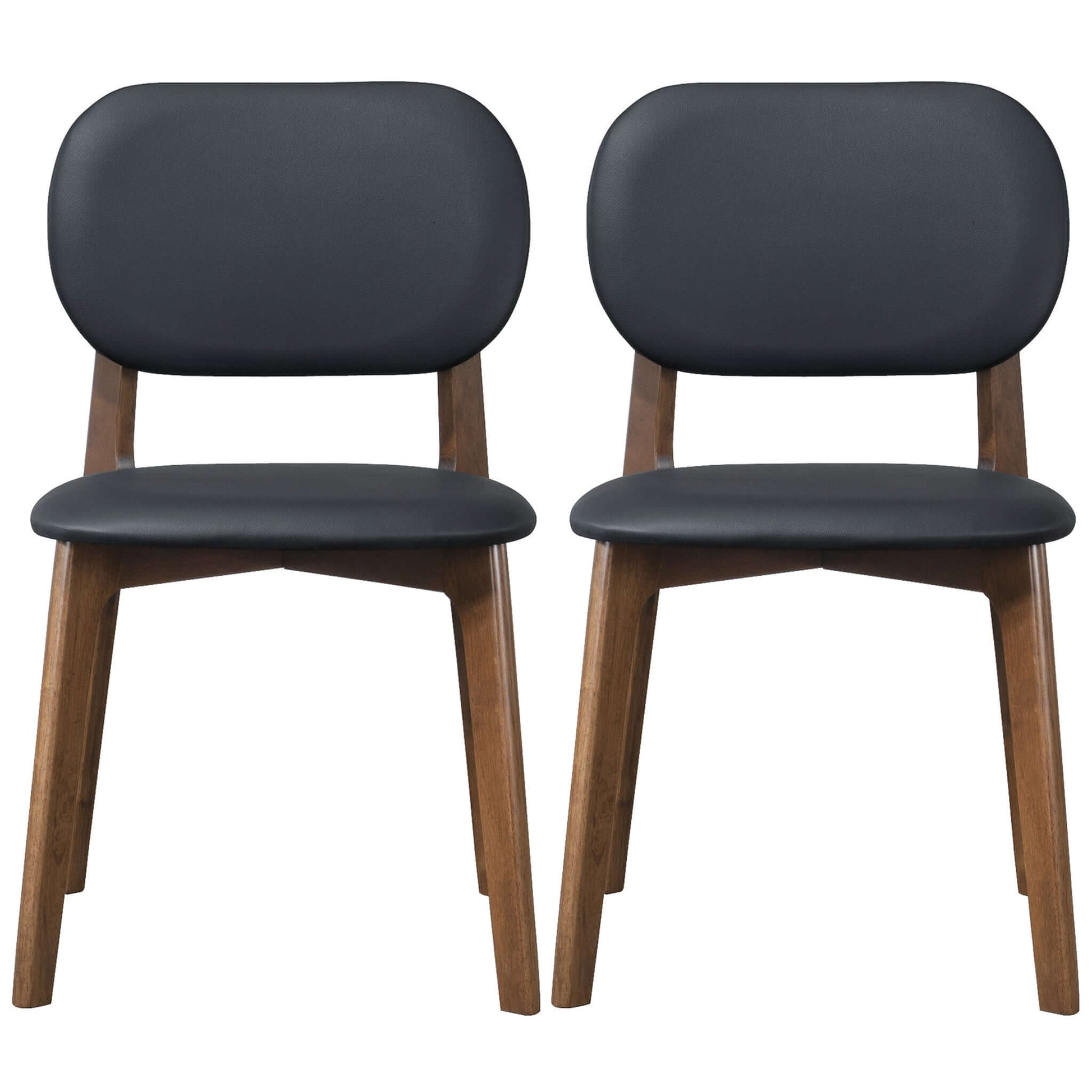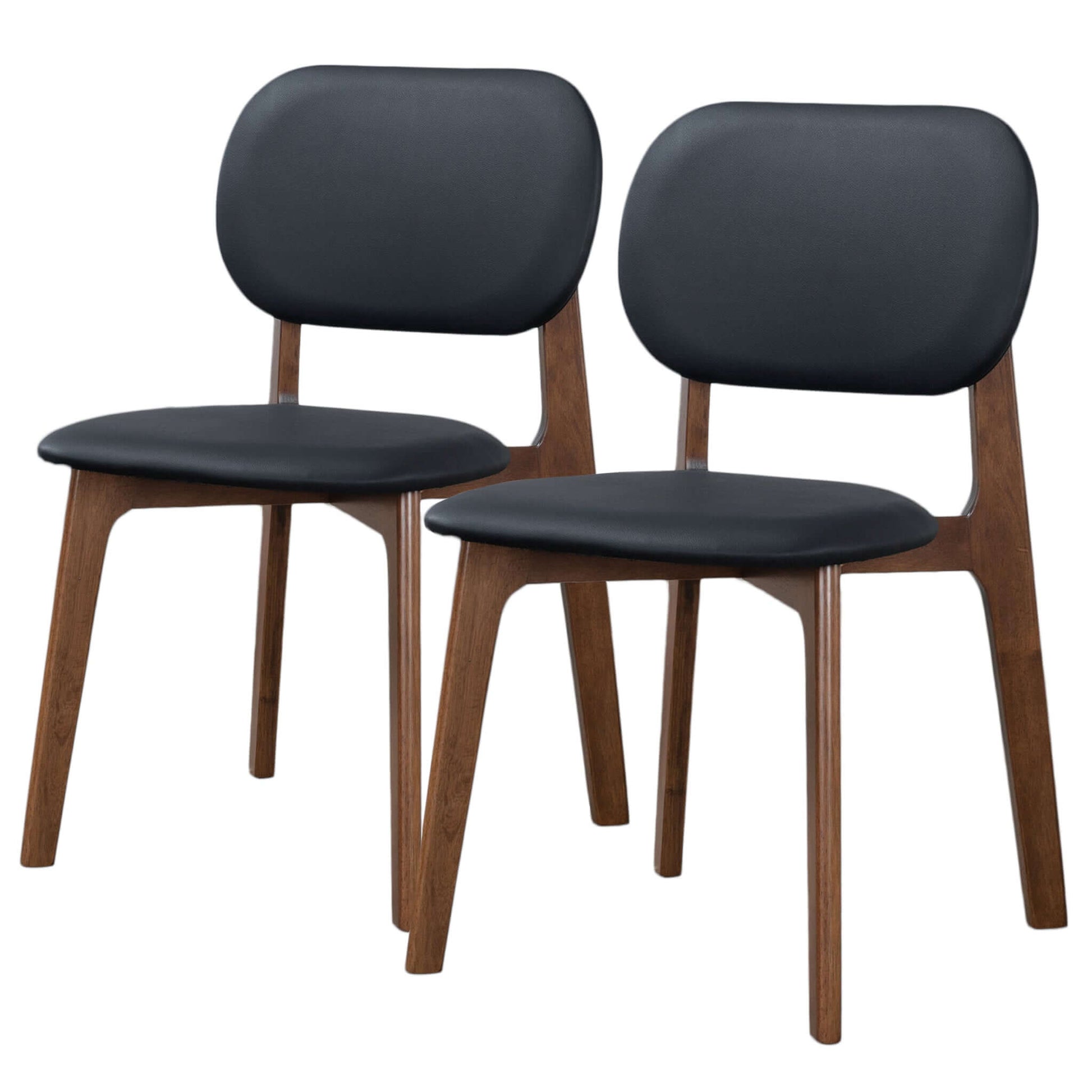 Kelsey Mid-Century Modern Black Leather Dining Chair (Set of 2)