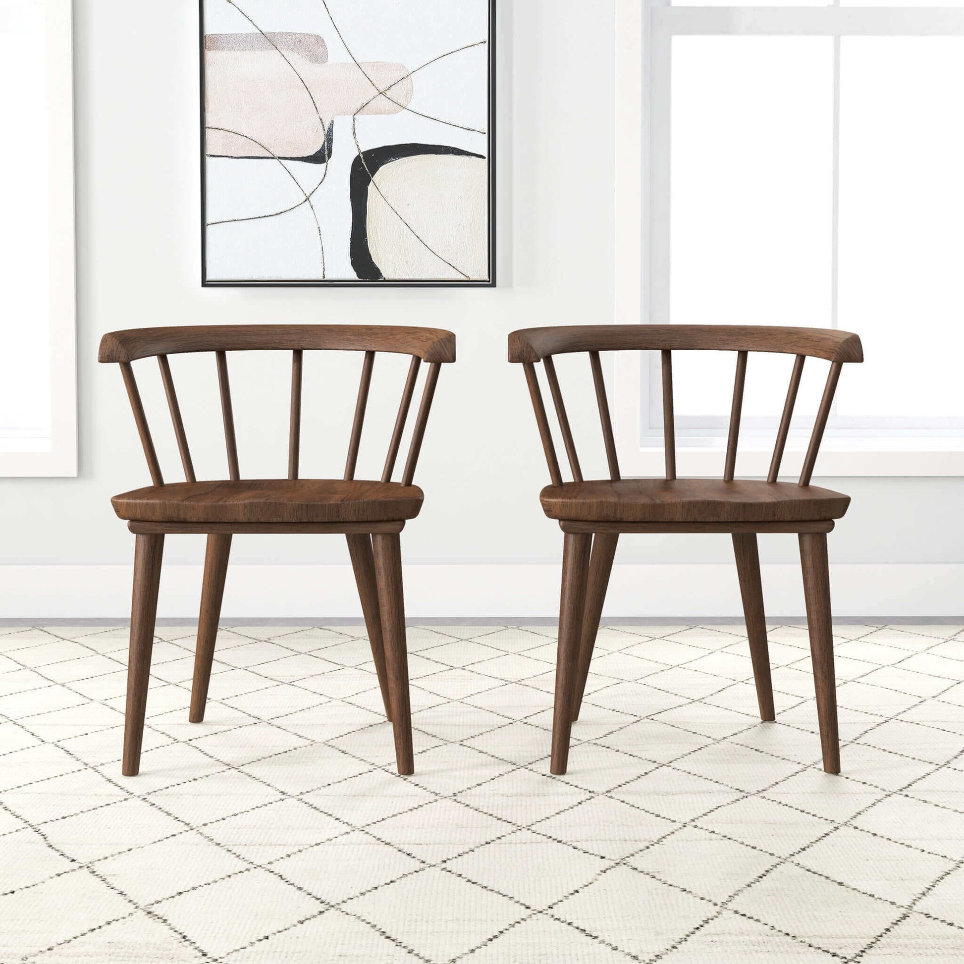 Enhance your dining room or kitchen with the Kingsley Mid-Century Modern Solid Wood dining chairs. Made of durable Eucalyptus Solid Wood and featuring a high-density foam cushion for comfort and support. Easy to clean and assemble. Sold as a set of 2 chairs.