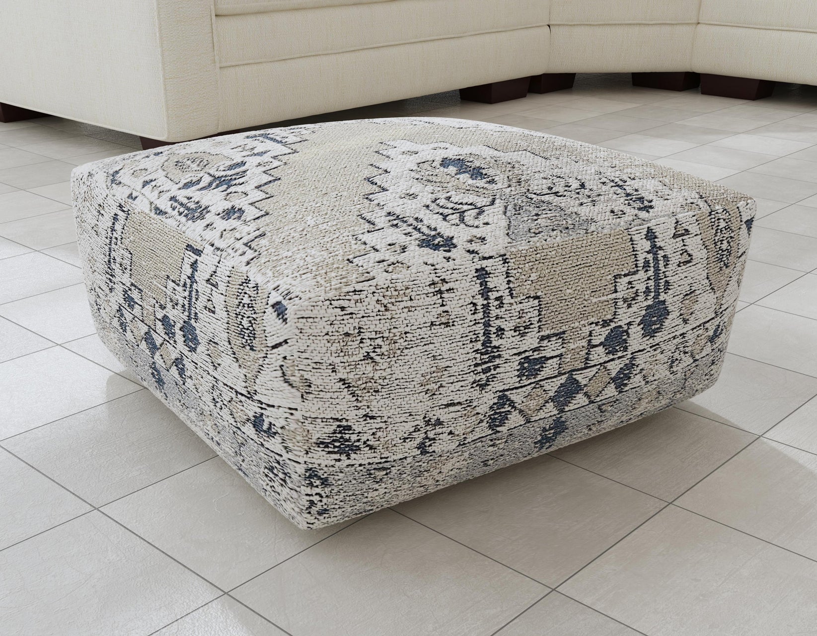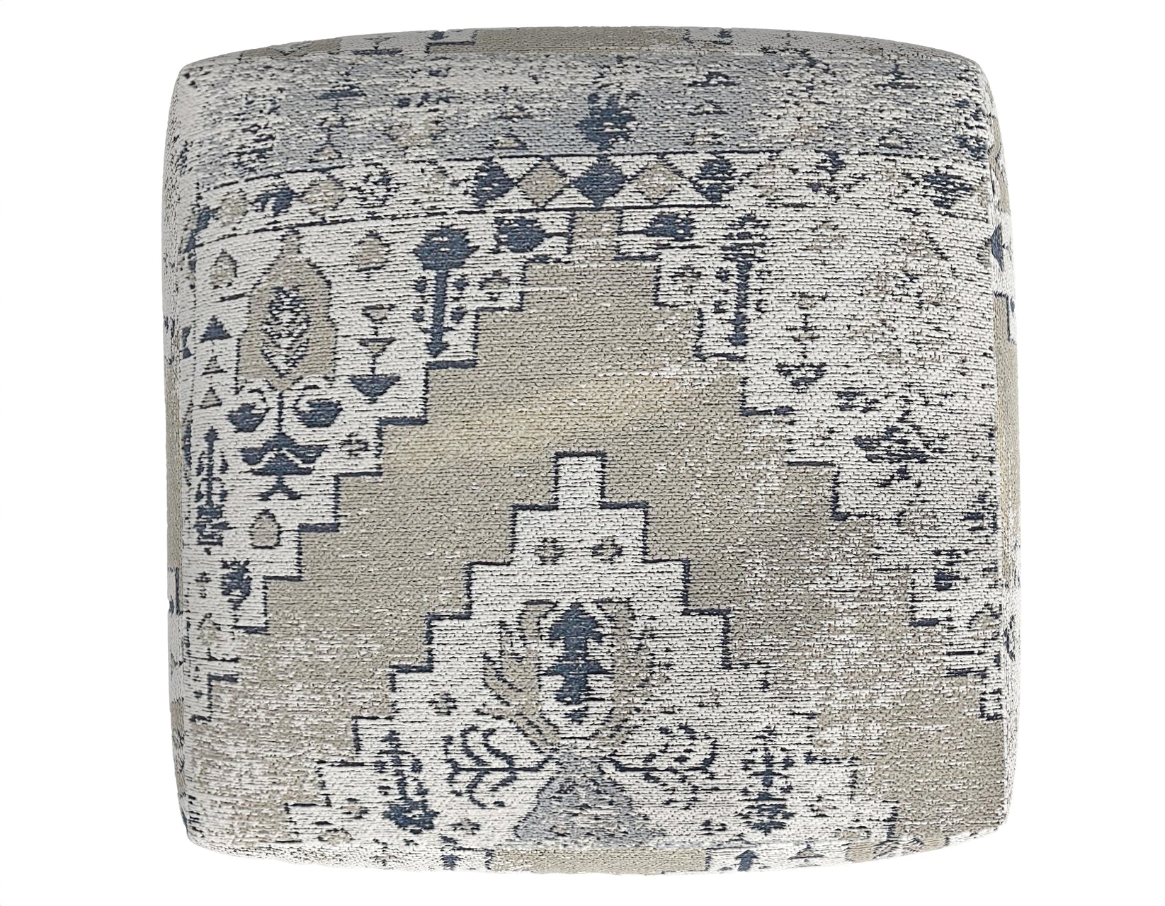The Kira Printed Jacquard Pouf makes tor a timeless accent piece for your home. Immerse yourself in southwest elegance with a blend of muted greens, blues and whites in a vintage pattern to subtly access your room. Great as a footrest, backrest, seat or just a simple accent, Kira complements and improves any room. Embrace Comfort and Style in Every Detail.
