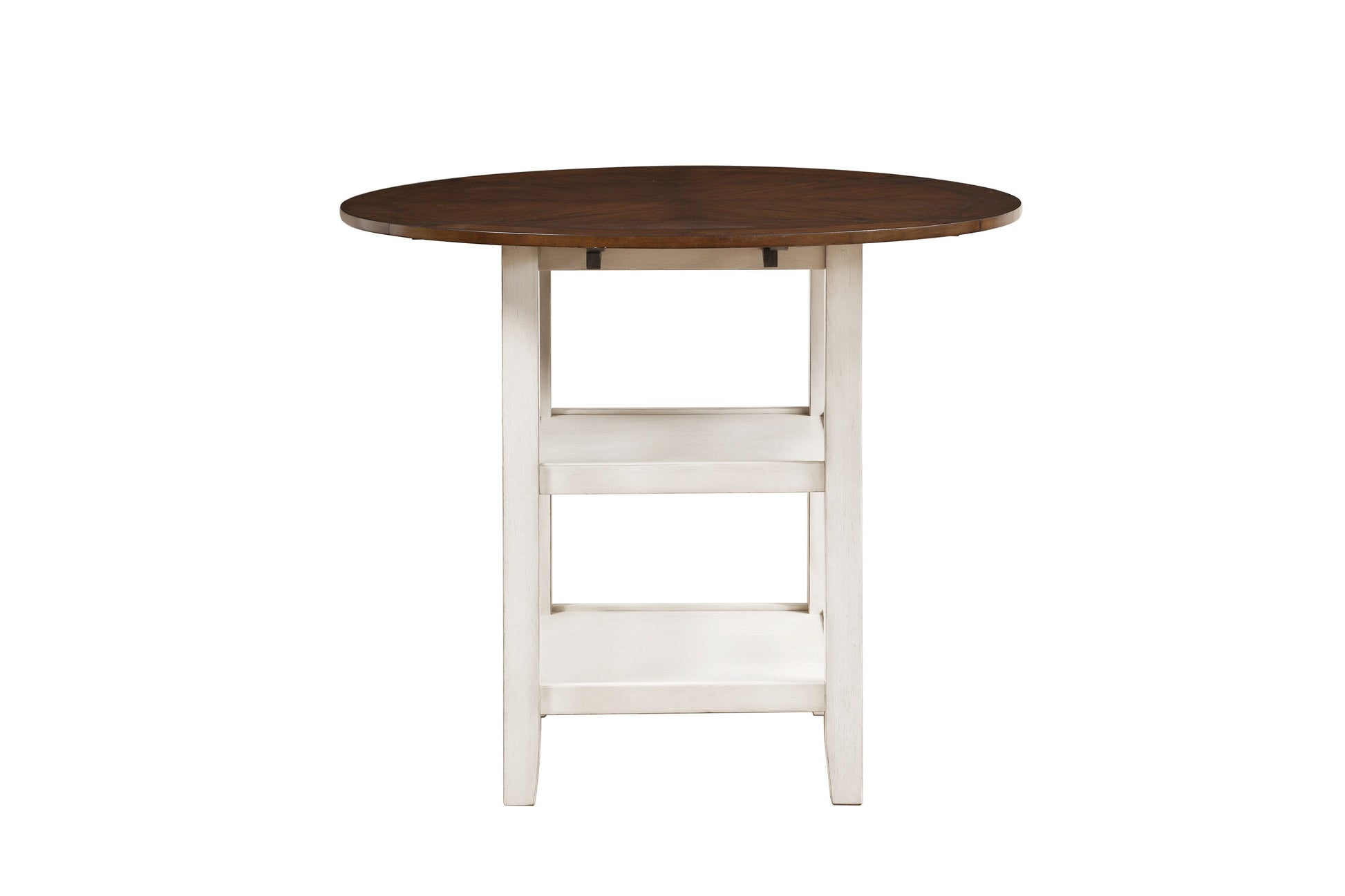 Perfectly scaled for your cozy dining space is the Kiwi Collection. The two-tone finish of the table – white-wash and dark cherry – serves to highlight the mindy veneer. The table’s drop leaf sides allow for placement or storage within your space that is quick and convenient for your lifestyle. An open shelf base allows for the display of your tabletop accessories.