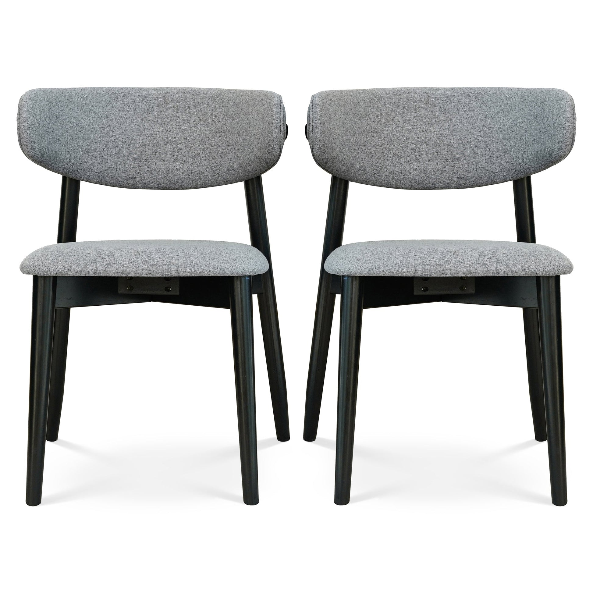 Give your dining room or kitchen a touch of elegance with the Korbin Mid-Century Modern upholstered fabric dining chairs in Grey. This two dining chair set is made of a durable Solid Wood frame and featuring a high-density foam cushion, the dining chairs present a lovely structure for an additional high level of comfort and back support. Can be cleaned with a non-abrasive cleaning solution followed by a quick microfiber cloth. With little assembly needed, you can quickly start entertaining with no hassle! Available in various timeless colors, you're sure to find something that matches your decor.