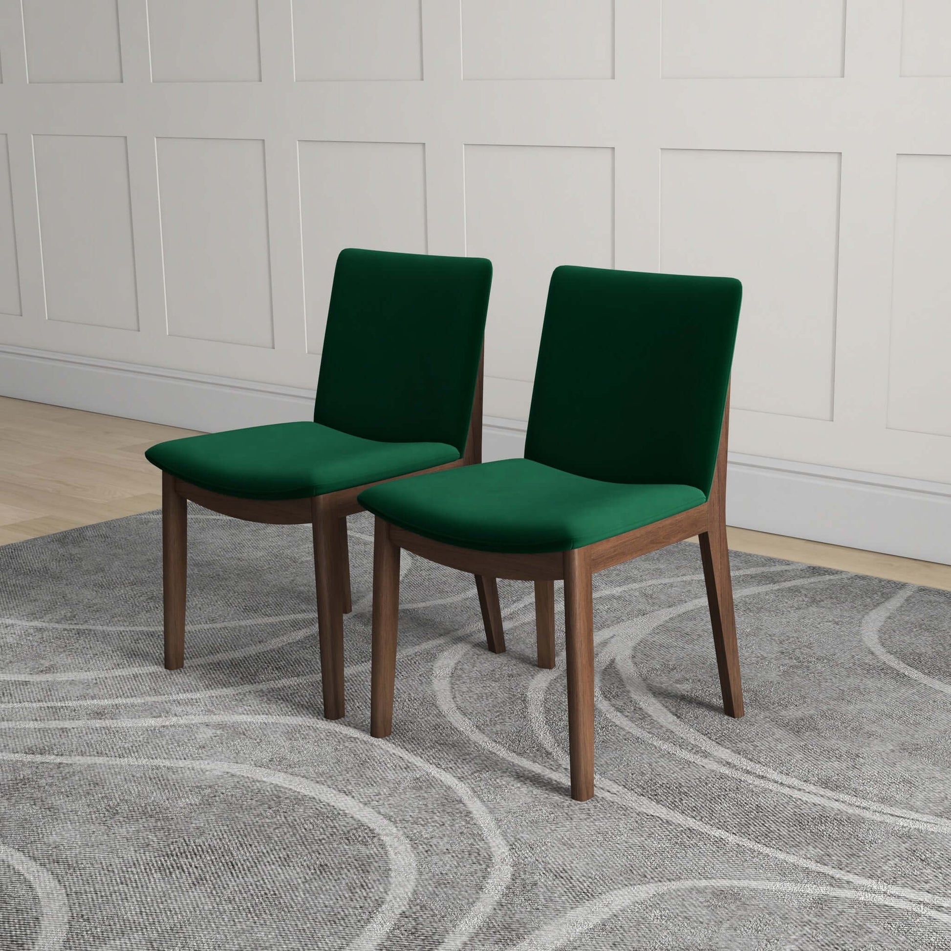 Laura Mid-Century Modern Solid Wood Dining Chair (Set of 2) Green Velvet