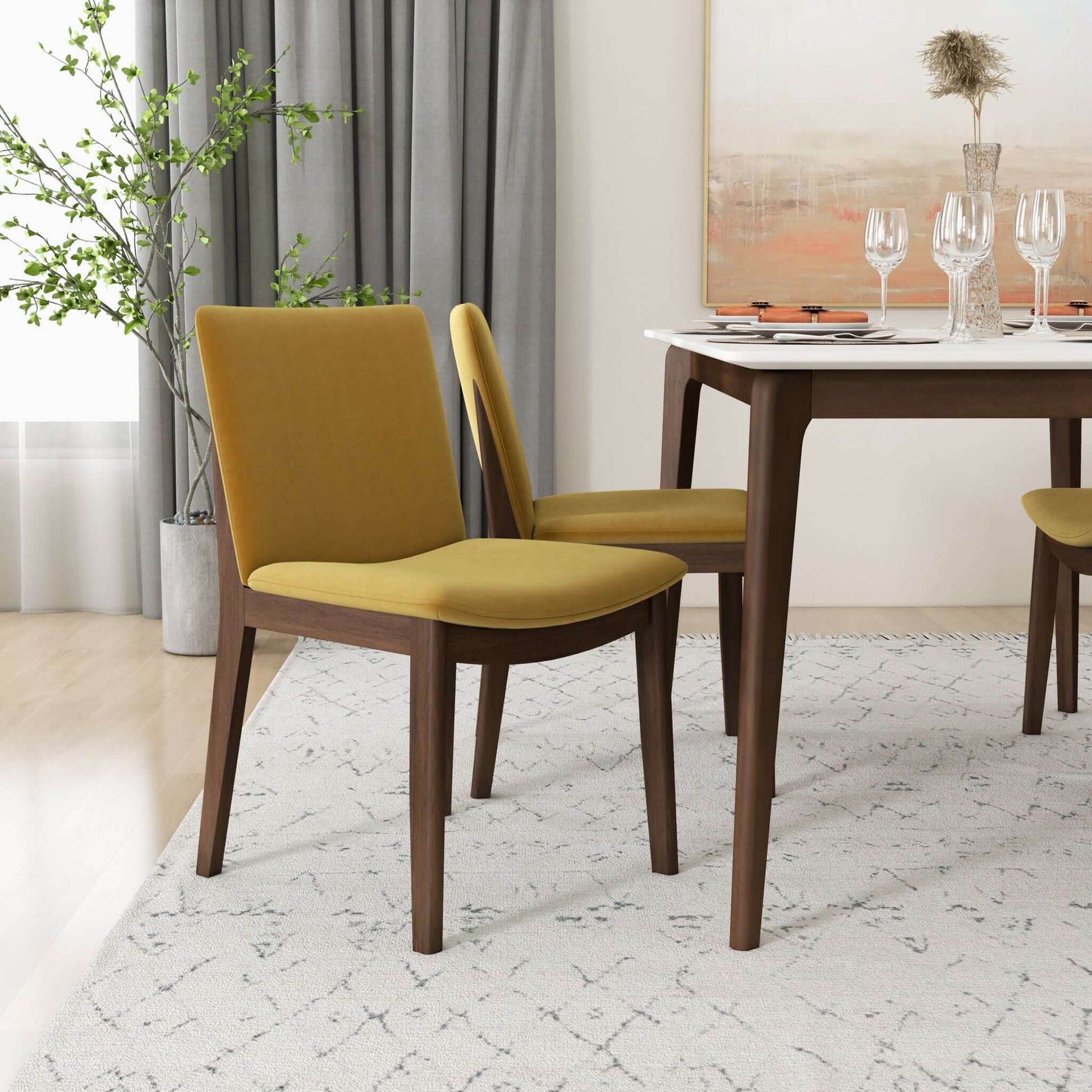 Laura Mid-Century Modern Solid Wood Dining Chair (Set of 2) Dark Yellow Velvet