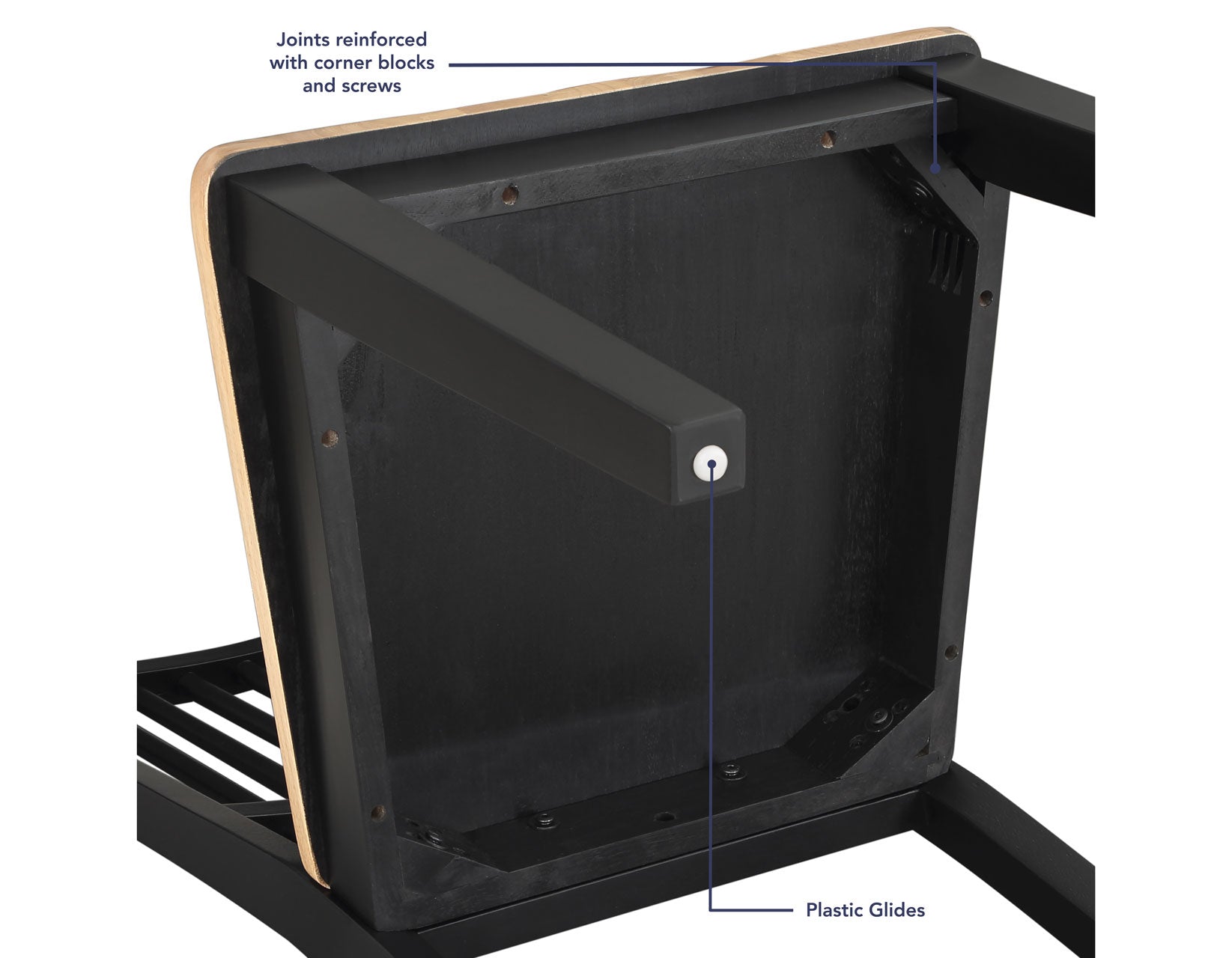 Bottom sled stretchers on the table provide sturdy support and stability for the 54″ Round Table