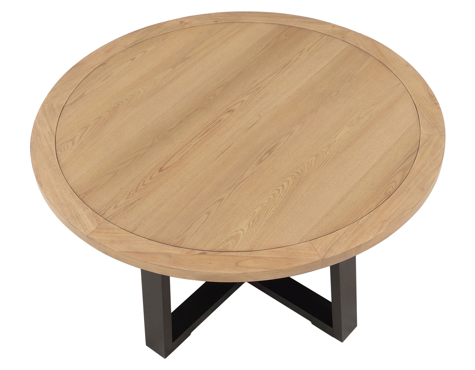 The 54-inch round Magnolia dining table fosters conversation and joviality, making it the perfect centerpiece for gatherings. Built to easily accommodate six or more people, this two-tone beauty features an architectural black sled base with a naturally finished top over ash veneers. Its modern yet warm profile adds a touch of sophistication to any dining space, blending contemporary style with inviting charm. Whether hosting family dinners or entertaining friends, the Magnolia dining table enhances every occasion with its elegant design and generous seating capacity.