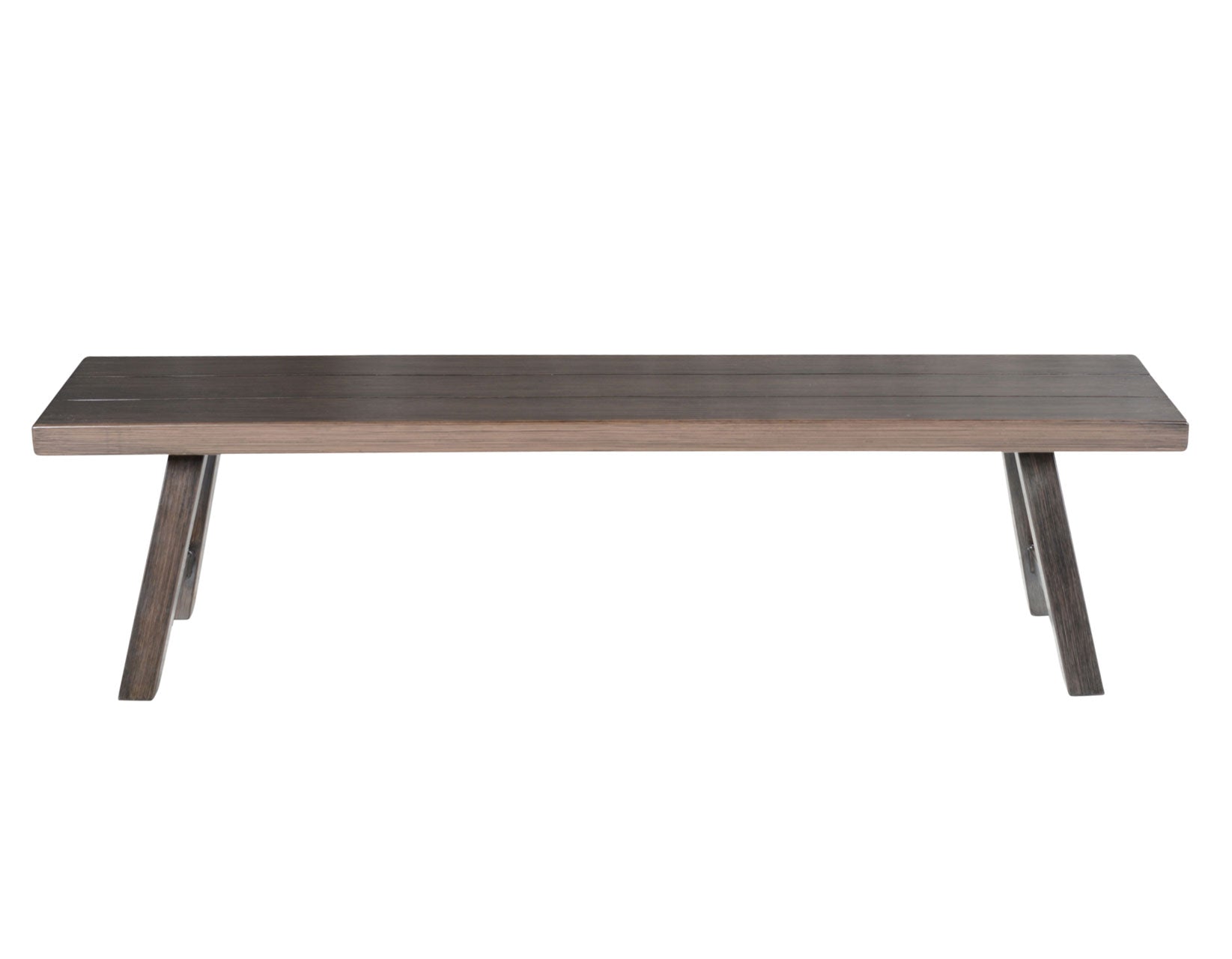 Gather, eat or even work in the great outdoors with the Marina outdoor bench. Styled like a regular dining bench but built for the elements, the Marina Patio Bench features a Powder- Coated Aluminum frame that is naturally rust-resistant. A double cross-timber pedestal base features a faux-plank top and faux-tenons to replicate the look of wood in an outdoor frame. Waffle foam underneath adds soundproofing and weight to the frame. Eat, work or just enjoy the great outdoors with the Marina Patio Dining Bench.