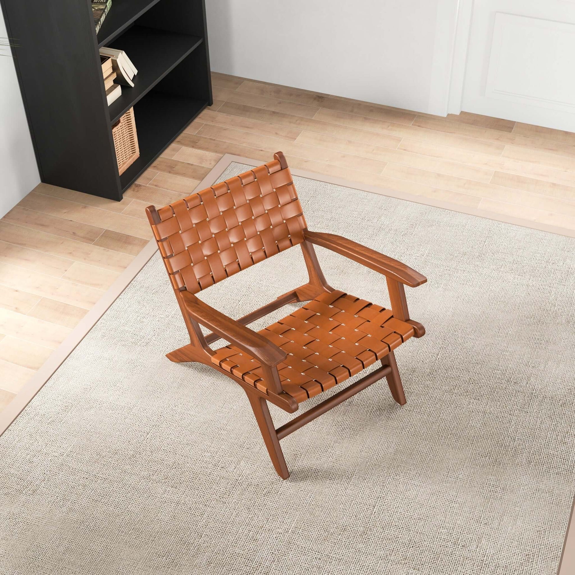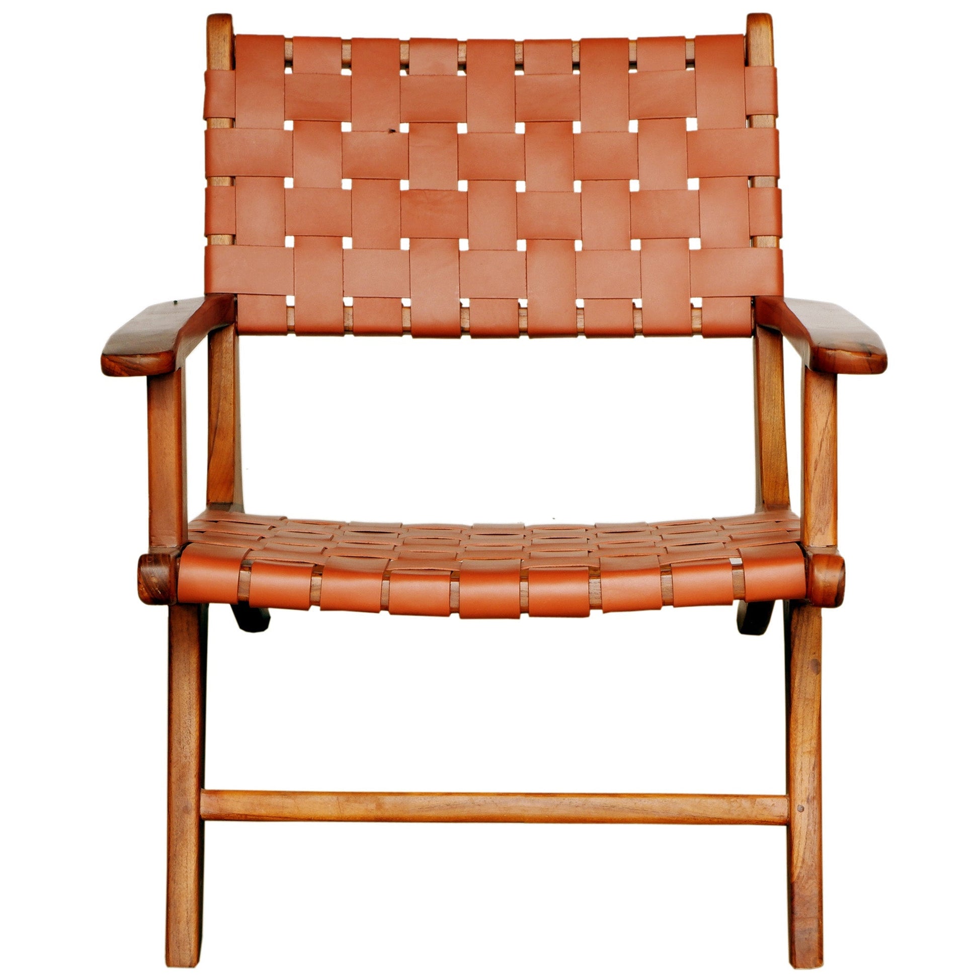 Melody Tan Strap Leather Teak Wood Lounge Chair