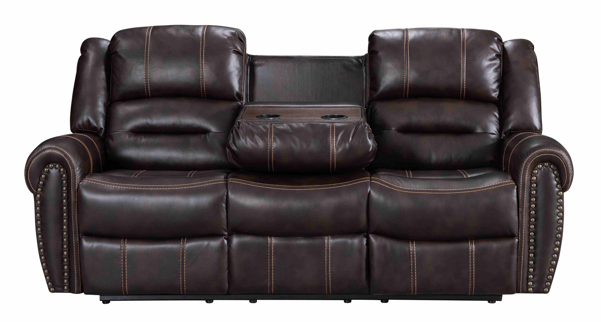 The rich brown tones and elegant stitching detail create a timeless look that complements any decor style. Whether you have a modern or classic interior, this Mesa Brown Reclining Sofa living room set adds a touch of refinement to your home. Impress your guests with the perfect blend of comfort and style in Dark Brown Leather Loveseat.