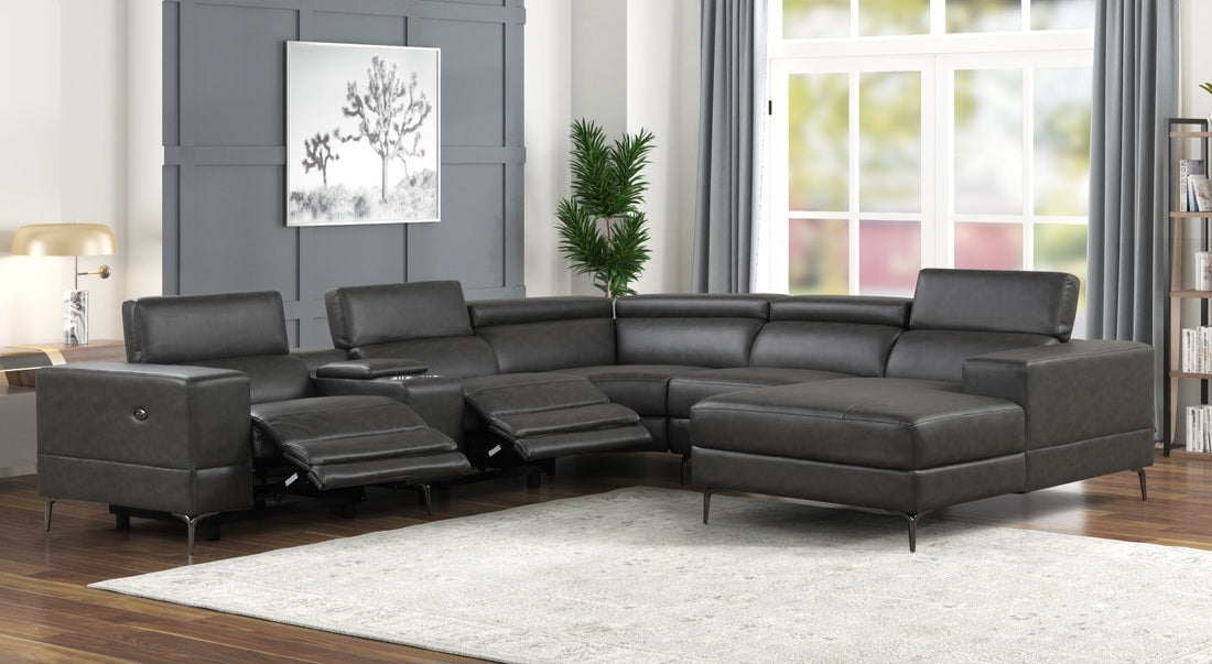 6PC MODULAR SECTIONAL FEATURES 2 POWER RECLINERS WITH ADJUSTABLE HEADREST.