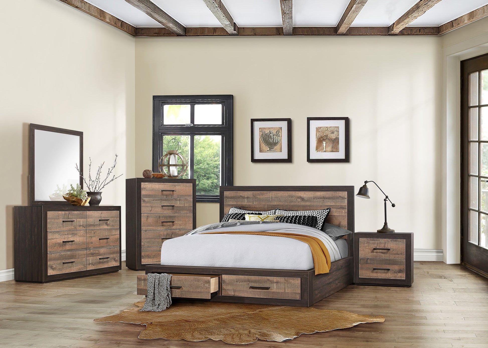 - 2-tone finish: rustic mahogany and dark ebony