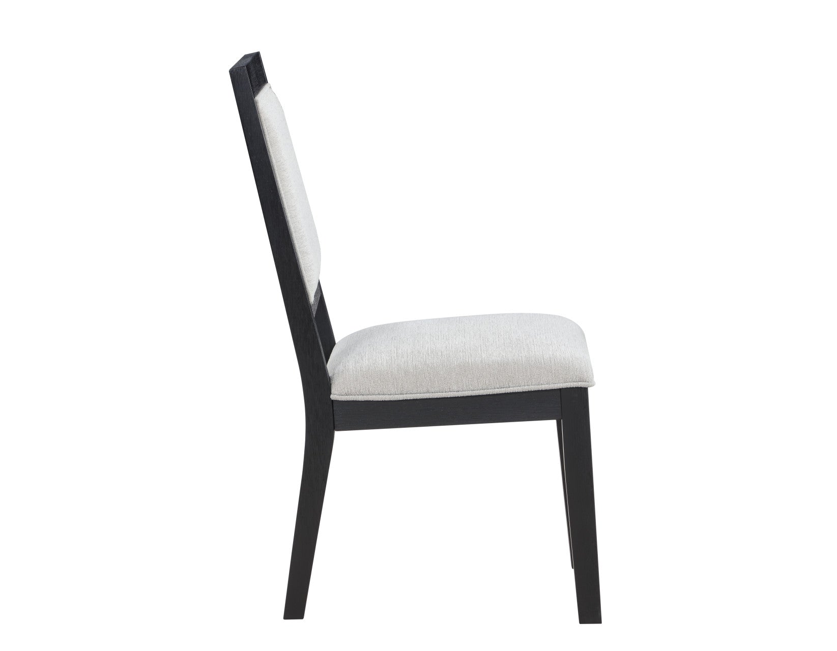 A masterpiece of versatility and elegance, the Molly Black Side Chair offers the charm of transitional styling with a clean lined design that effortlessly bridges the gap between classic and contemporary. Designed with your comfort in mind, the Molly Side Chair boasts a plush foam-padded seat and back with the perfect back pitch, ensuring a delightful dining experience every time you take a seat. The soft-to-touch and easy-to-maintain polyester cover in a sophisticated gray hue adds a touch of luxury to your space. A wood-trimmed back not only exudes timeless elegance but also safeguards against everyday wear and tear, ensuring its durability for years to come. At home in farmhouse or craftsman environments. Its versatile style effortlessly adapts to any dining, office, or living areas setting, whether you’re dressing up a formal dinner or creating a cozy nook for relaxation.