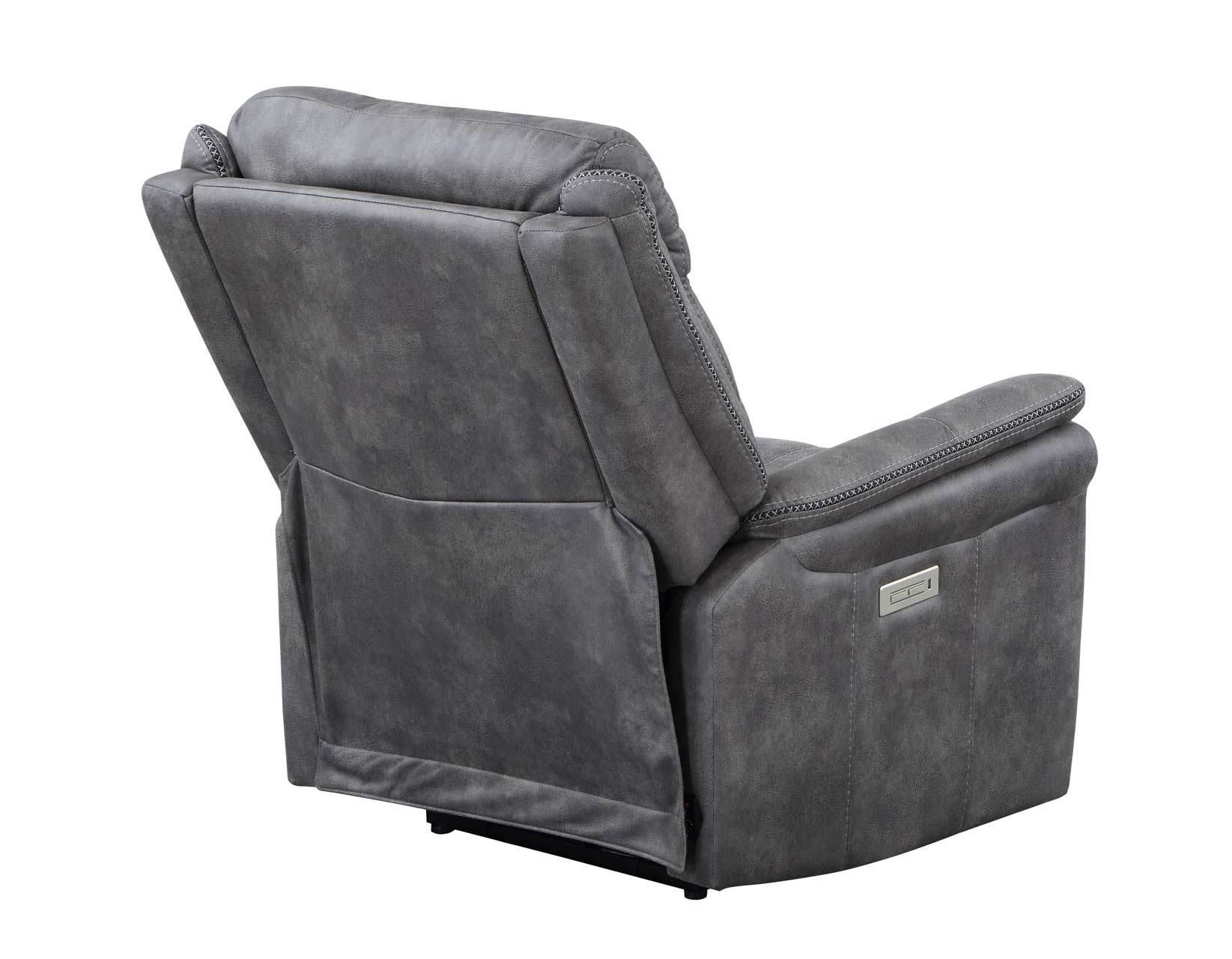 A mix of traditional and modern elements combine in the Morrison Power Reclining Collection. The cool gray microsuede cover has a butter-soft touch and is neutral enough to complement virtually any color scheme. Dual-power reclining features both power footrest and power headrest to place you in the perfect relaxation position. Add extras like an USB charging port and All Close button and you have a recliner that makes sure you never miss any action.