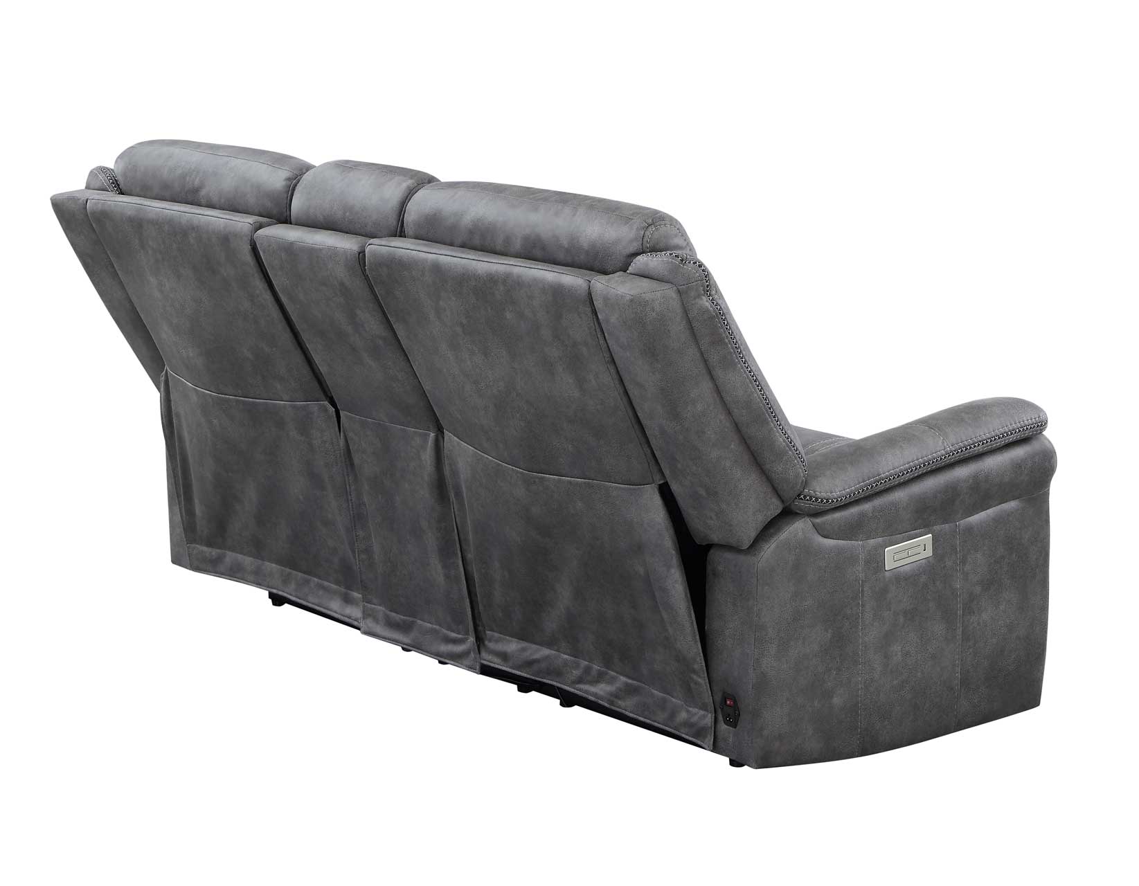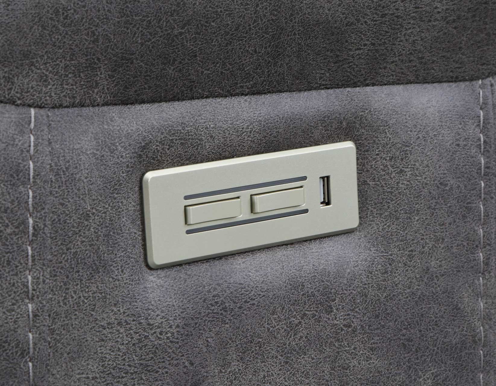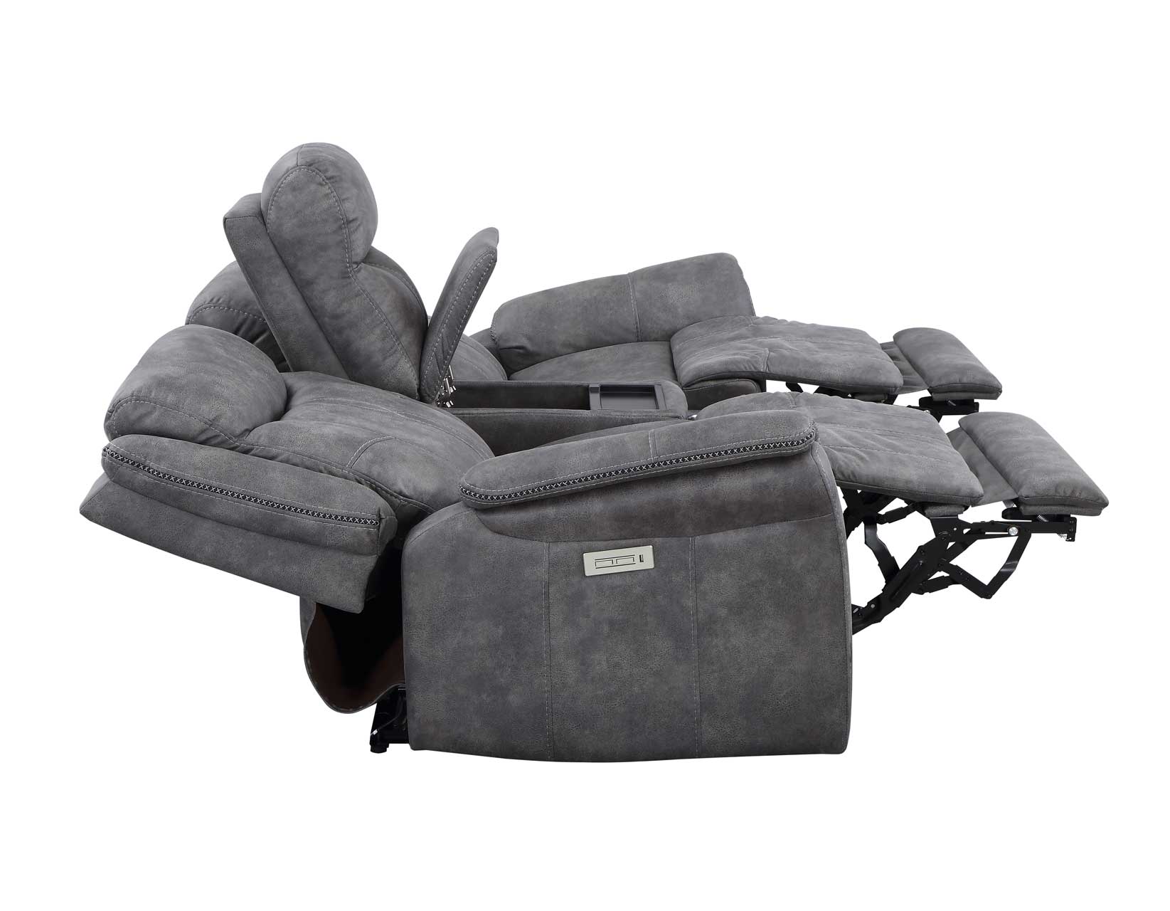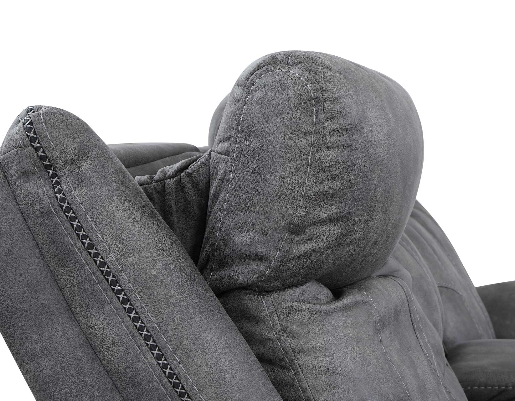 A mix of traditional and modern elements create a transitional design in Morrison. A cool gray faux-suede cover is neutral for most color schemes with a butter-soft touch that combines with power footrest and power headrest for a comfortable Console Loveseat built to last. Concealed cupholders pop-out with a quick touch and the built-in console is a great place to store remotes.