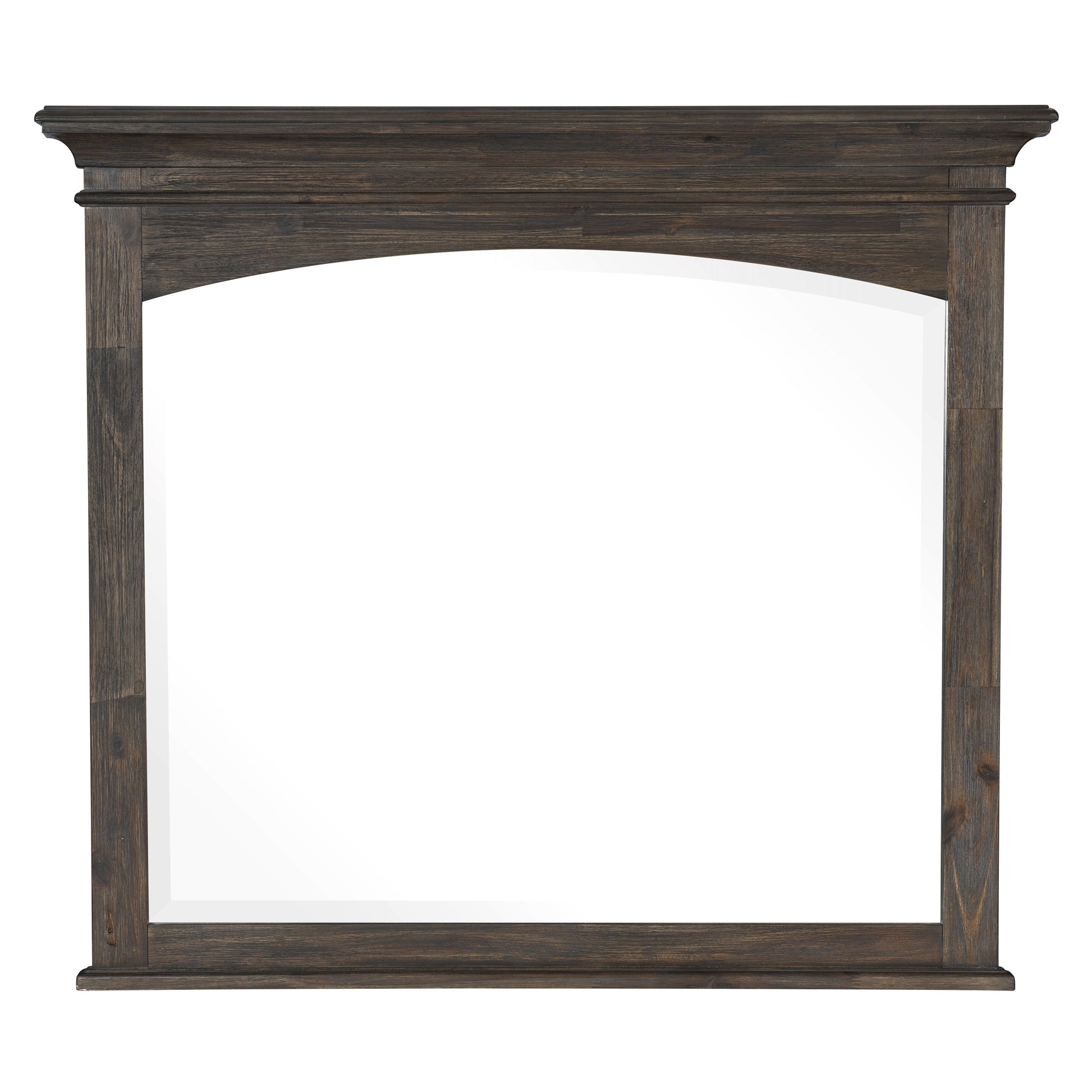 Classic accenting is paired with rusticated styling to create the look of the Motsinger Collection. Solid acacia and acacia veneers comprise the mirror’s frame and are finished in a wire-brushed rustic brown, perfectly accenting the wood’s distinct grain.