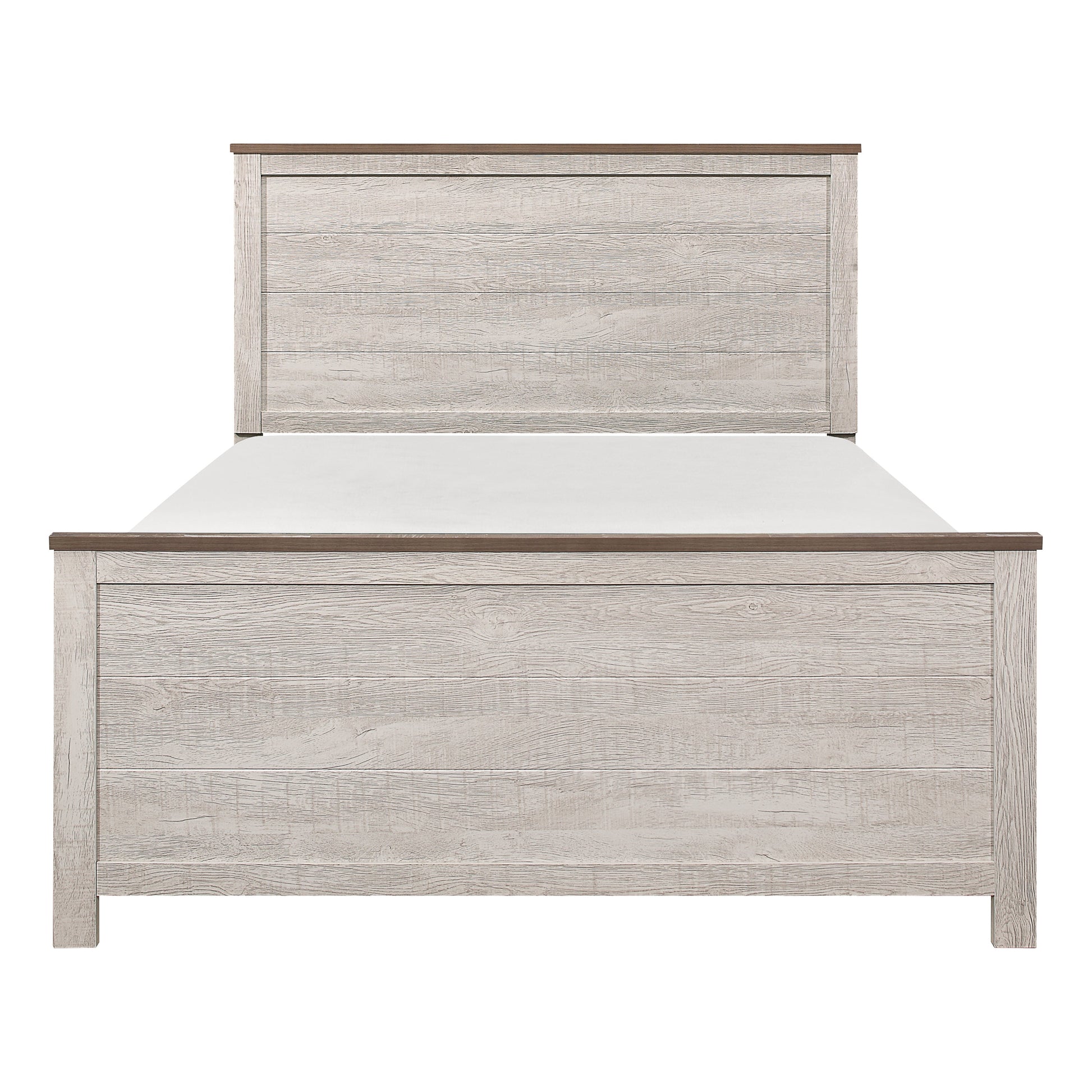 Transitional-rustic styling is expertly achieved in the design of the Nashville Collection. The two-tone faux wood look of melamine provides distinct contrast with antique white and brown lending visual texture to the Queen size bed.