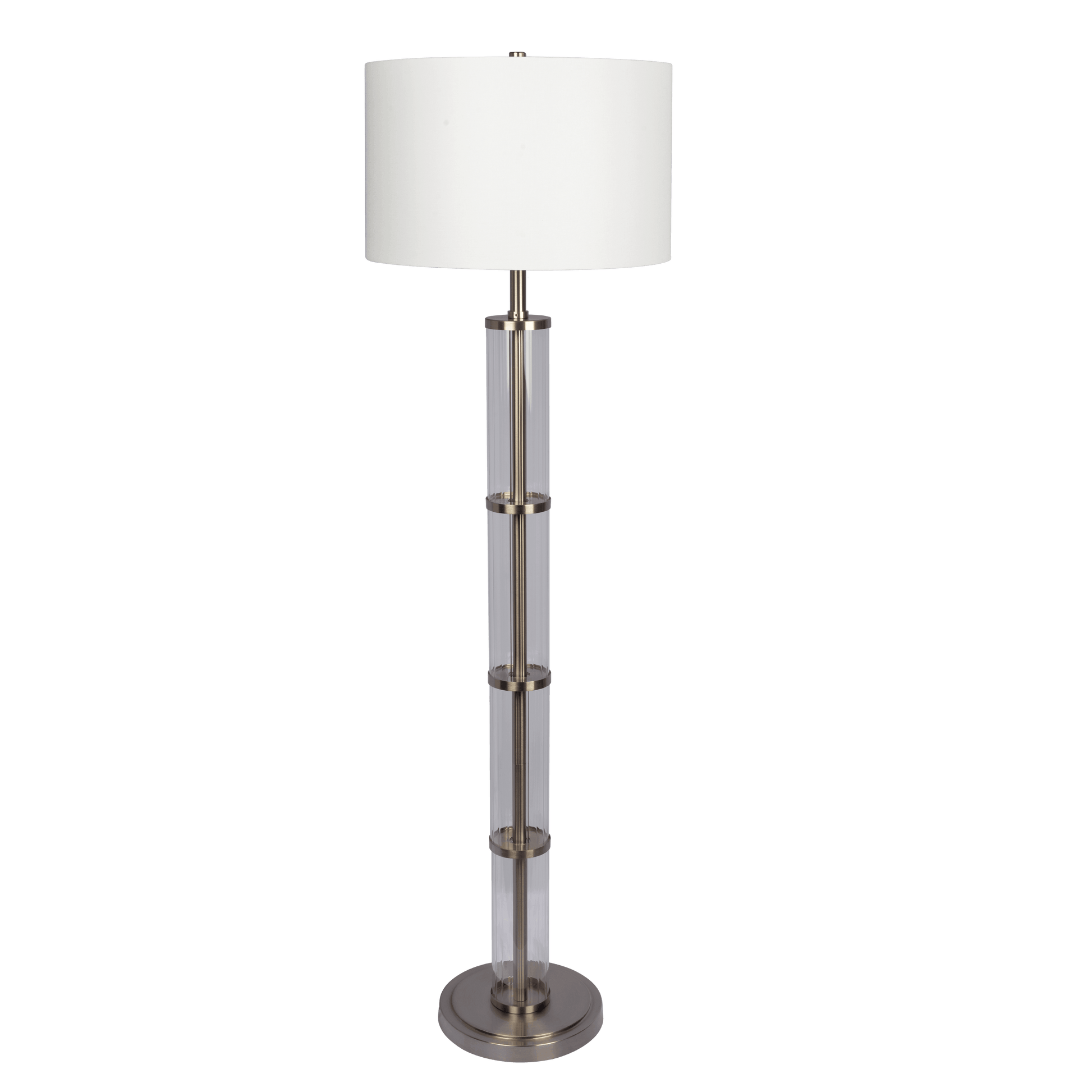 Illuminate your space with the sleek and modern Nimbus Brushed Nickel Floor Lamp! Featuring a 3-way rotary switch and a clear glass body, this lamp adds both functionality and style to any room. The sturdy metal base ensures stability and durability. Upgrade your lighting game today! Transform your space with the bold and elegant design of the Nimbus Brushed Nickel Floor Lamp. With a 3-way rotary switch and clear glass body, this lamp effortlessly combines practicality and sophistication. The sturdy metal base provides stability and long-lasting use. Elevate your lighting experience now!