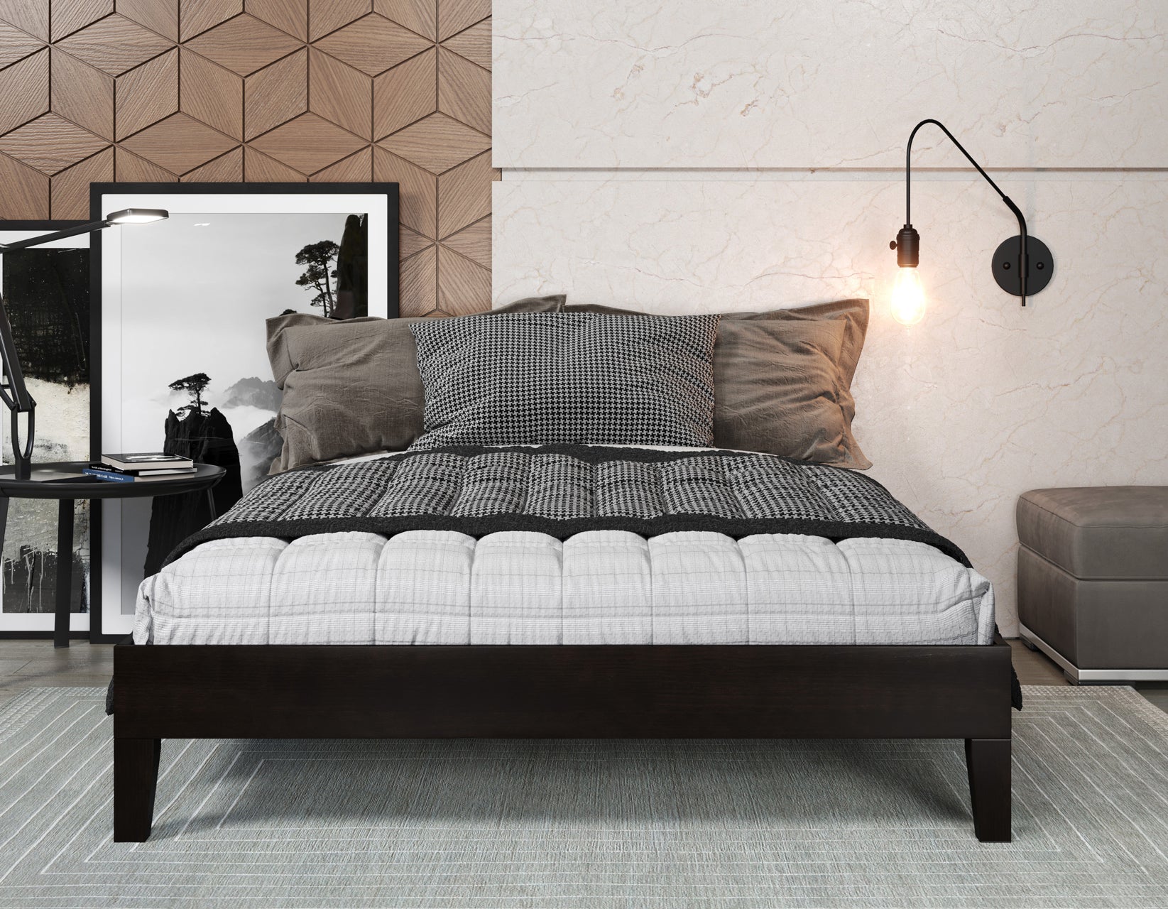 Clean lines and solid wood construction are hallmarks of the Nix Black Platform Bed. The modern silhouette of the Full Bed lends a simple sophistication to any room without distracting embellishments. The platform foundation is built to support a mattress without the need for a box spring for a low-profile look that is captivating. Available in three finishes and four sizes, the Nix Platform Bed is versatile and comfortable enough to build a bedroom around.