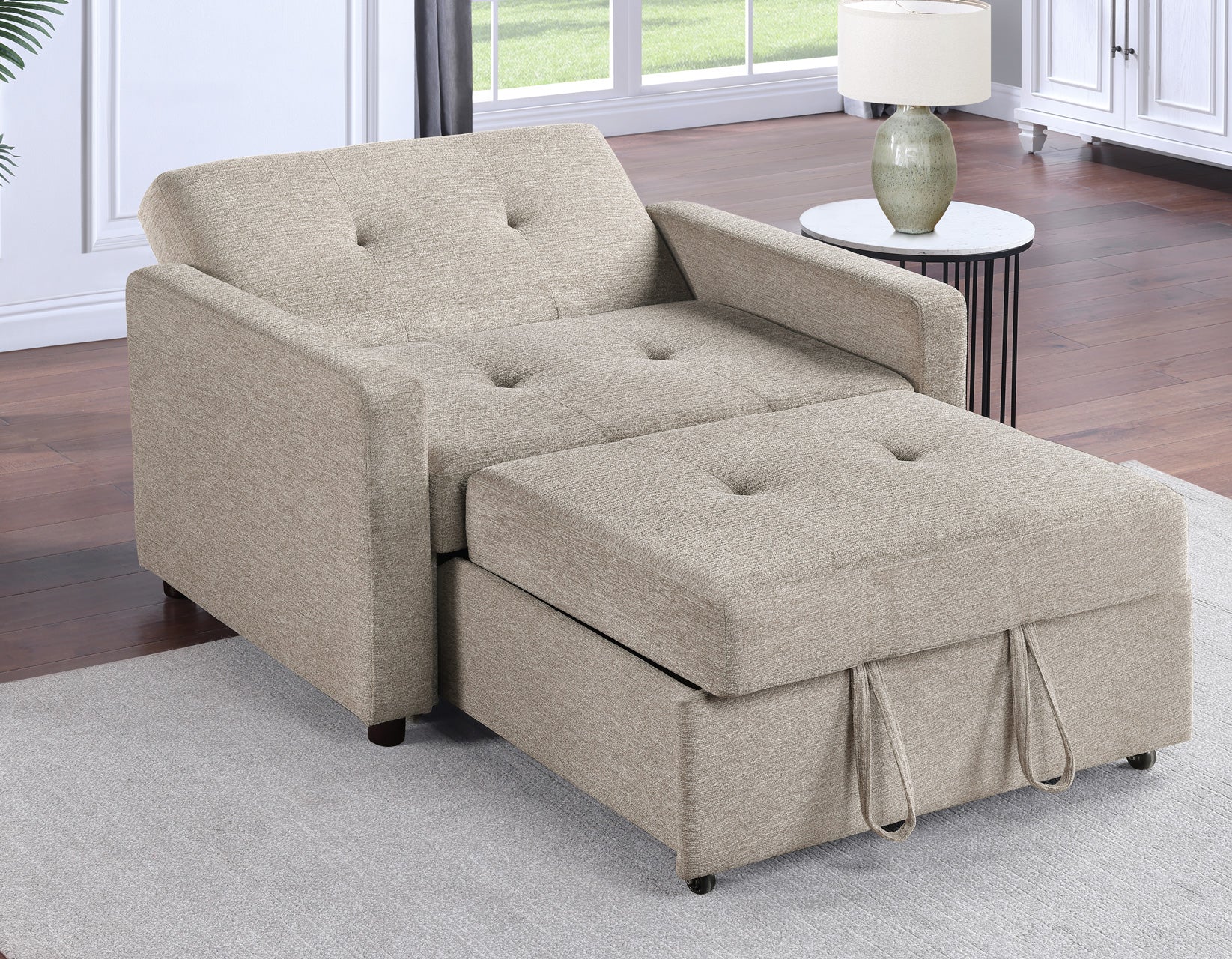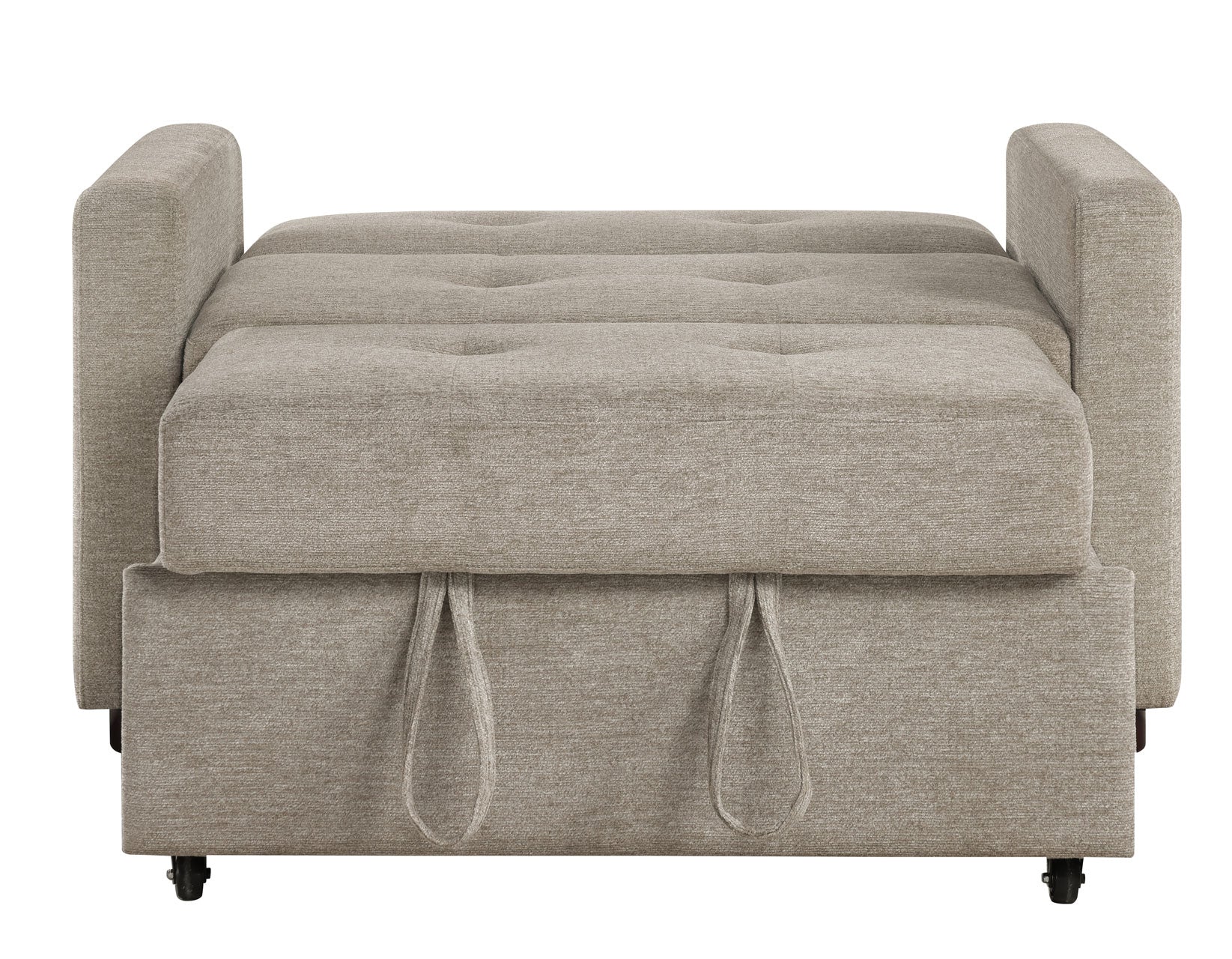 The Noah Convertible Sleeper Chair is your all-in-one comfort solution. This stylish piece functions as a cozy armchair, a reclining chaise, or a lay-flat sleep surface. With its beautiful mid-century modern design, it seamlessly enhances any room. The chair features 7-inch welted box seat cushions and soft tan chenille fabric, providing both comfort and elegance. Easily extend it into a chaise, or drop the back to create a sleep surface perfect for naps or guests. The Noah Convertible Sleeper Chair adapts to your every need.