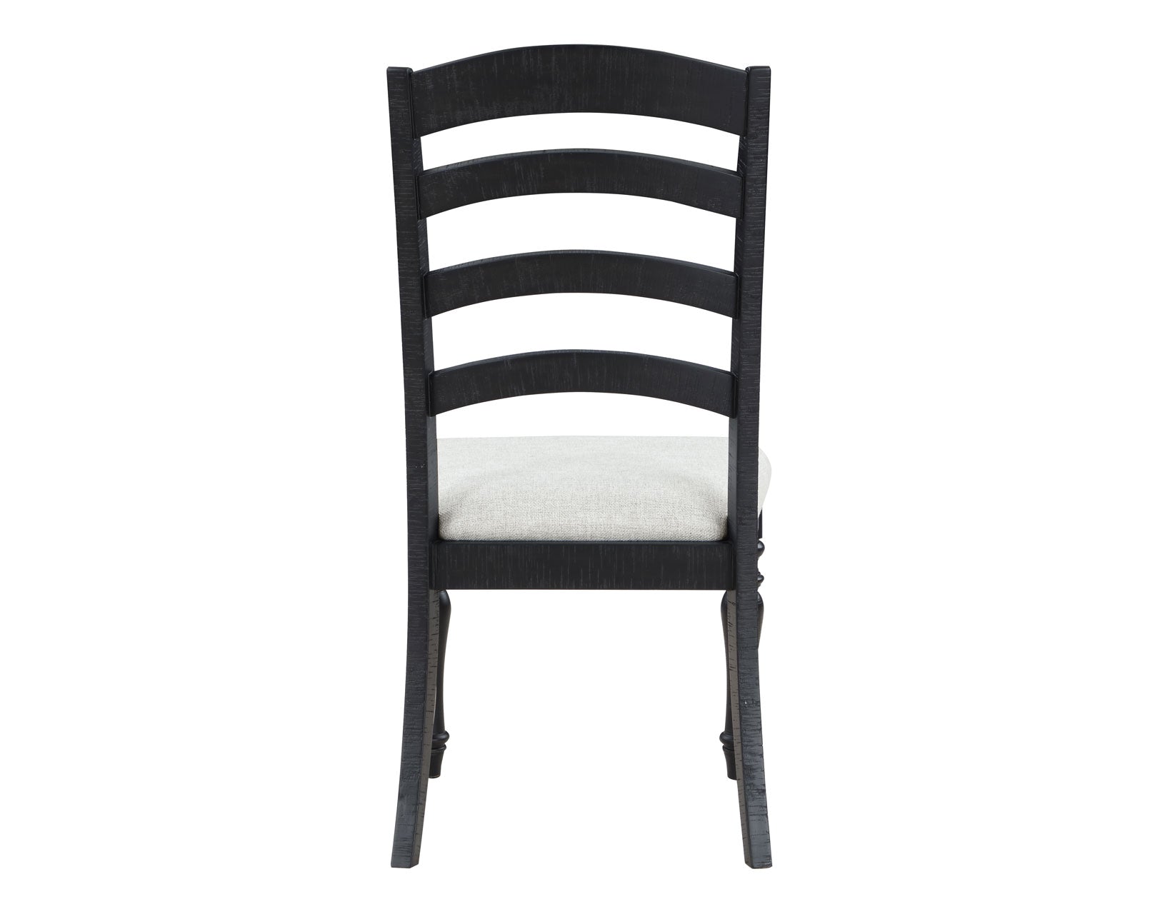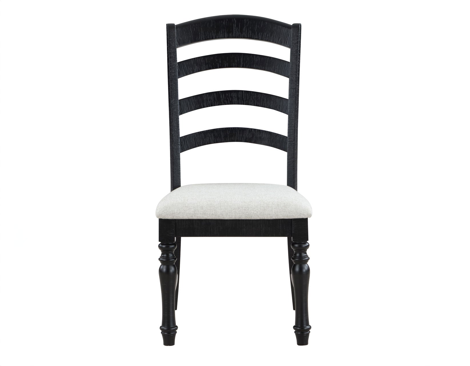 Elegantly sophisticated, this black and white farmhouse chair is a modern interpretation of the classic farmhouse chair.The Odessa Side Chair features an intricate ladderback design and elegantly turned legs crafted from distressed Asian hardwoods. Generous 3-inch cushioned seat ensures long gatherings are comfortable without compromising style. With its easy-care polyester fabric, this chair proves that you can have it all – a chair that looks as good as it feels.