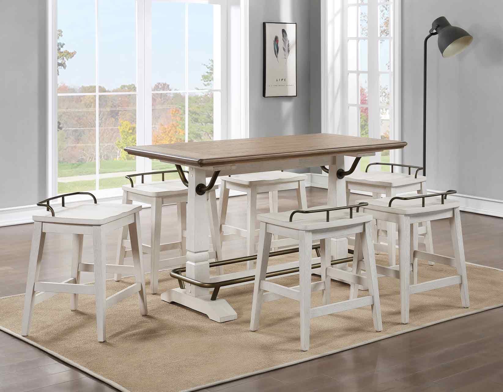 A casual two-tone finish and heritage farmhouse style are the hallmarks of the Pendleton Counter Height Gathering Table. Ivory and Honey Oak tones give an instant feeling of home while the plank-effect table and a saloon-style galley rail make the table feel like an instant time-treasured heirloom. Pair with the matching Pendleton Counter Stools for a coordinated classic look.