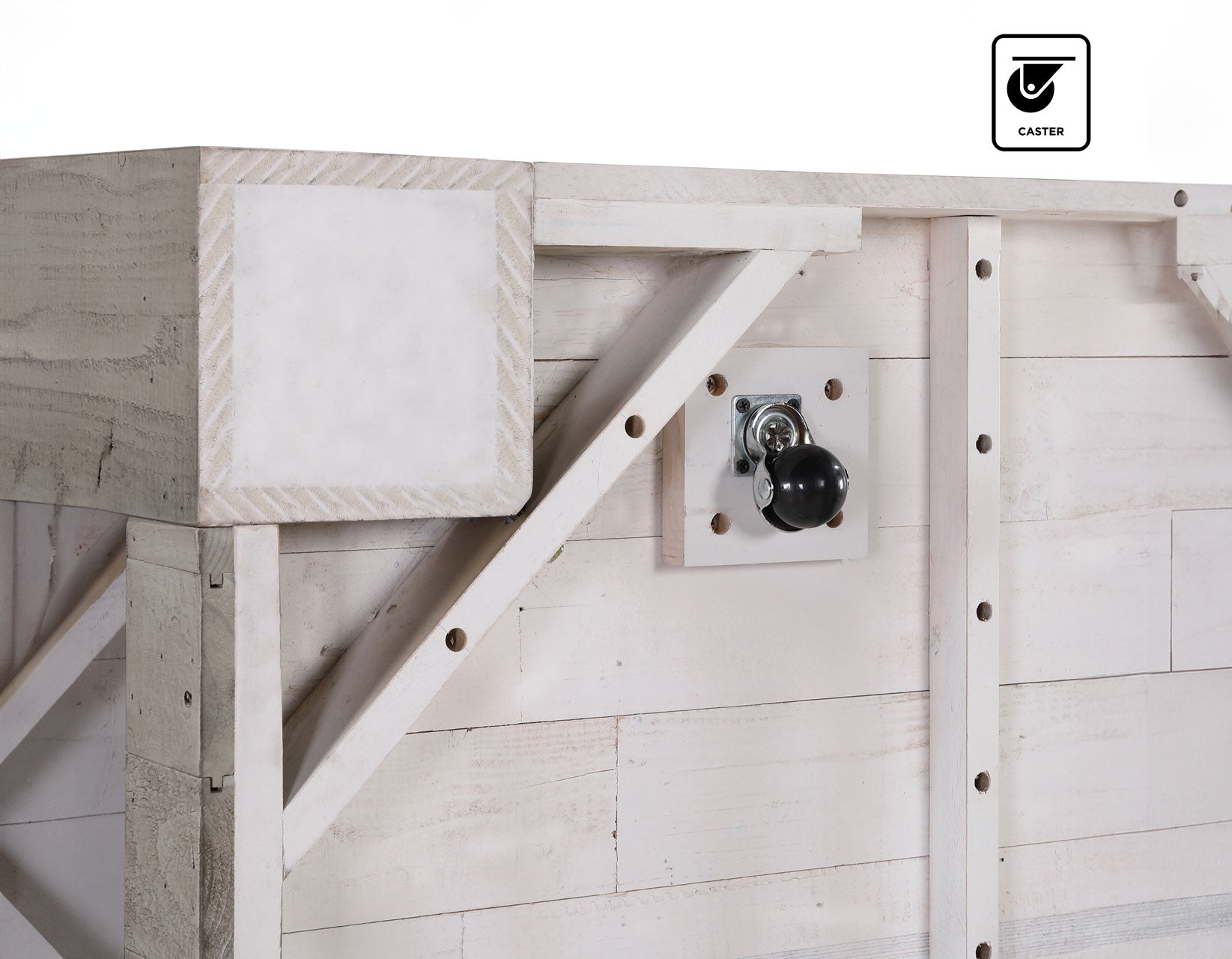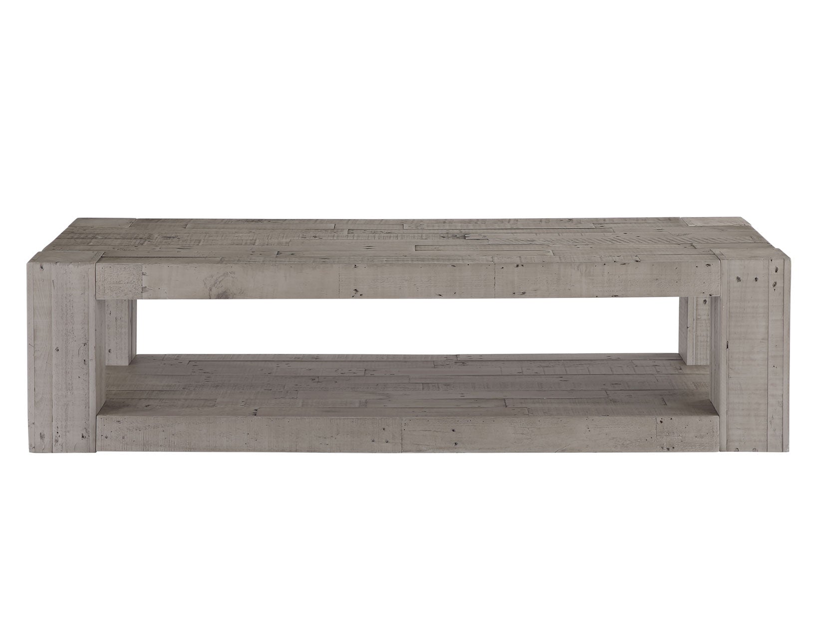 Crafted from reclaimed pine solids, the Pinedale Cocktail Table marries rustic allure with modern practicality. Its sturdy construction ensures durability while adding character to any living space. Finished in a distressed gray, the natural grain and knots of the wood shine through, adding depth to its rustic charm. Equipped with casters for easy mobility, Pinedale effortlessly adapts to various seating arrangements or creates extra space when needed. With a convenient bottom shelf and solid wood legs, this table seamlessly blends functionality with rustic elegance, making it a perfect centerpiece for your home.