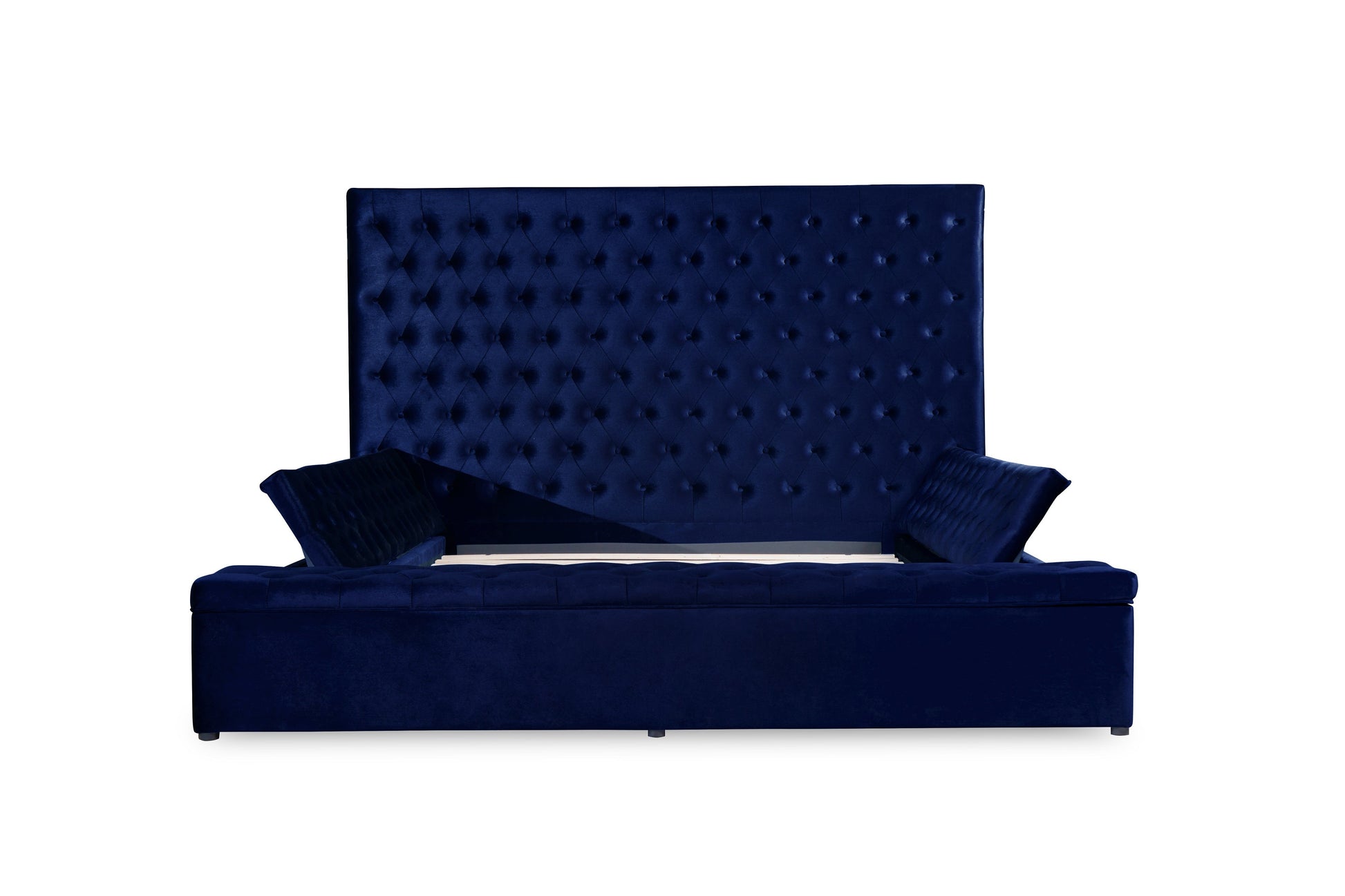 Prague Blue Velvet King Upholstered Storage Platform Bed