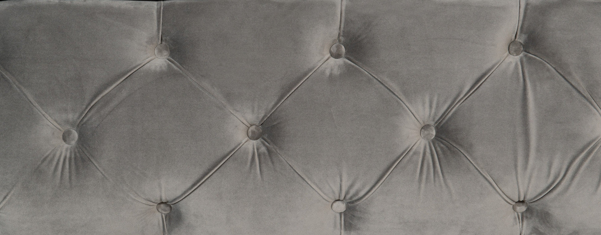 The balance of rusticated accenting and elegant form is exquisitely achieved in the design of the Rachelle Collection. Serving as the focal point of the collection the stately sleigh bed presents an elegant profile for your bedroom, with its gray velvet-covered, rolled, padded headboard and footboard defined by button tufting, nailhead accent and wood framing. The knotty pecan wood veneer that frames the Queen bed features a weathered pecan finish further lending to the classic look of the collection.