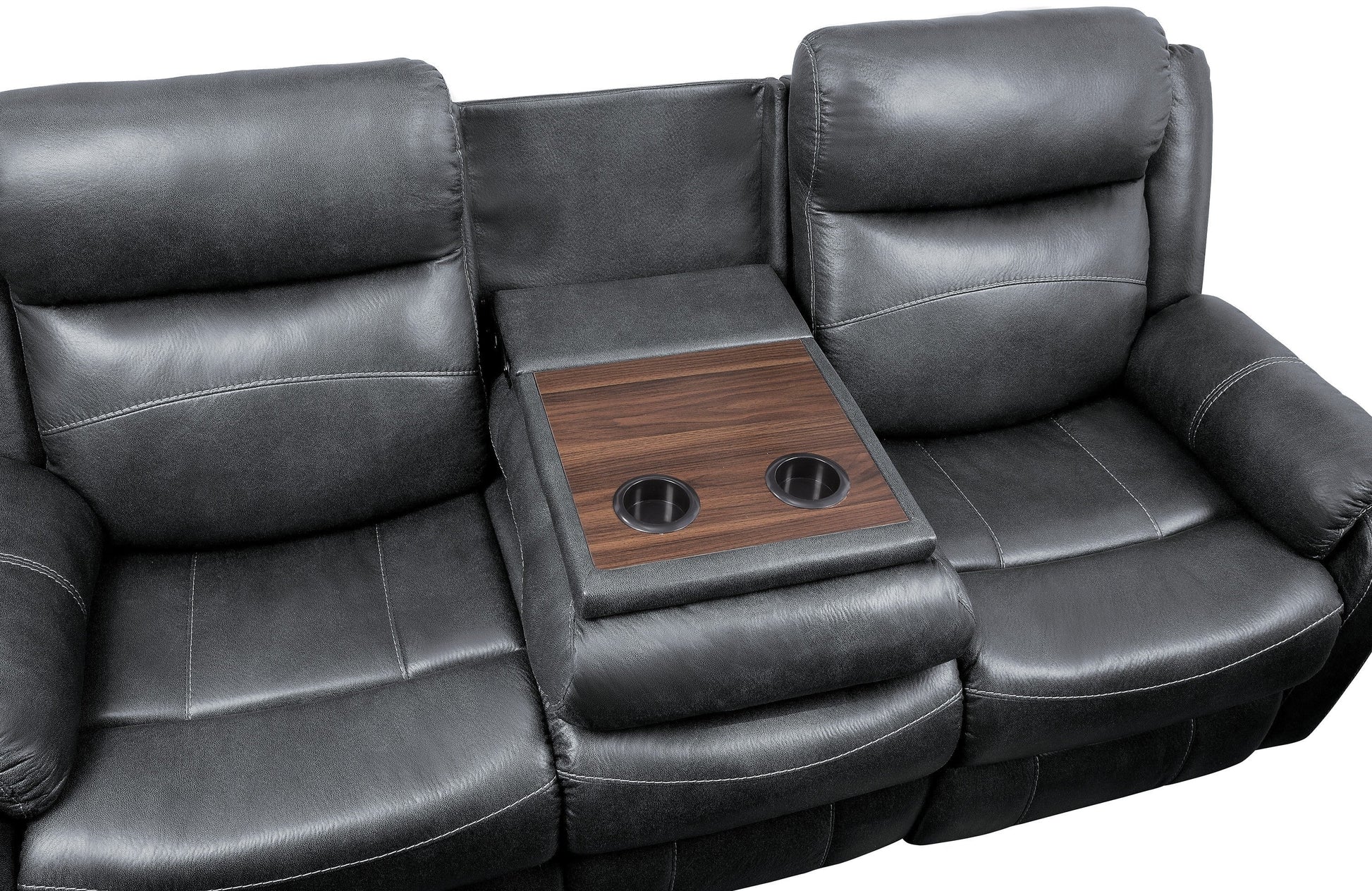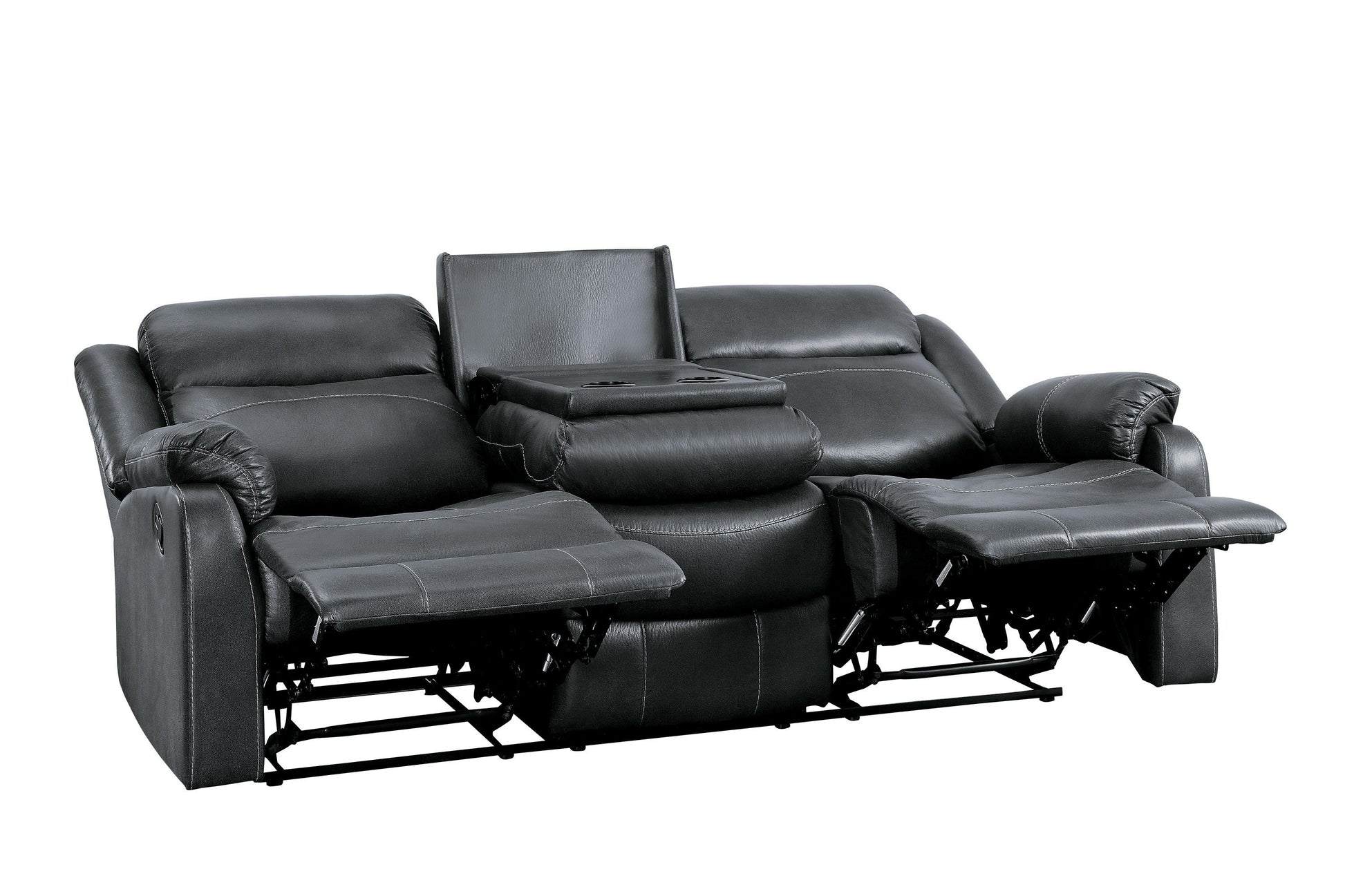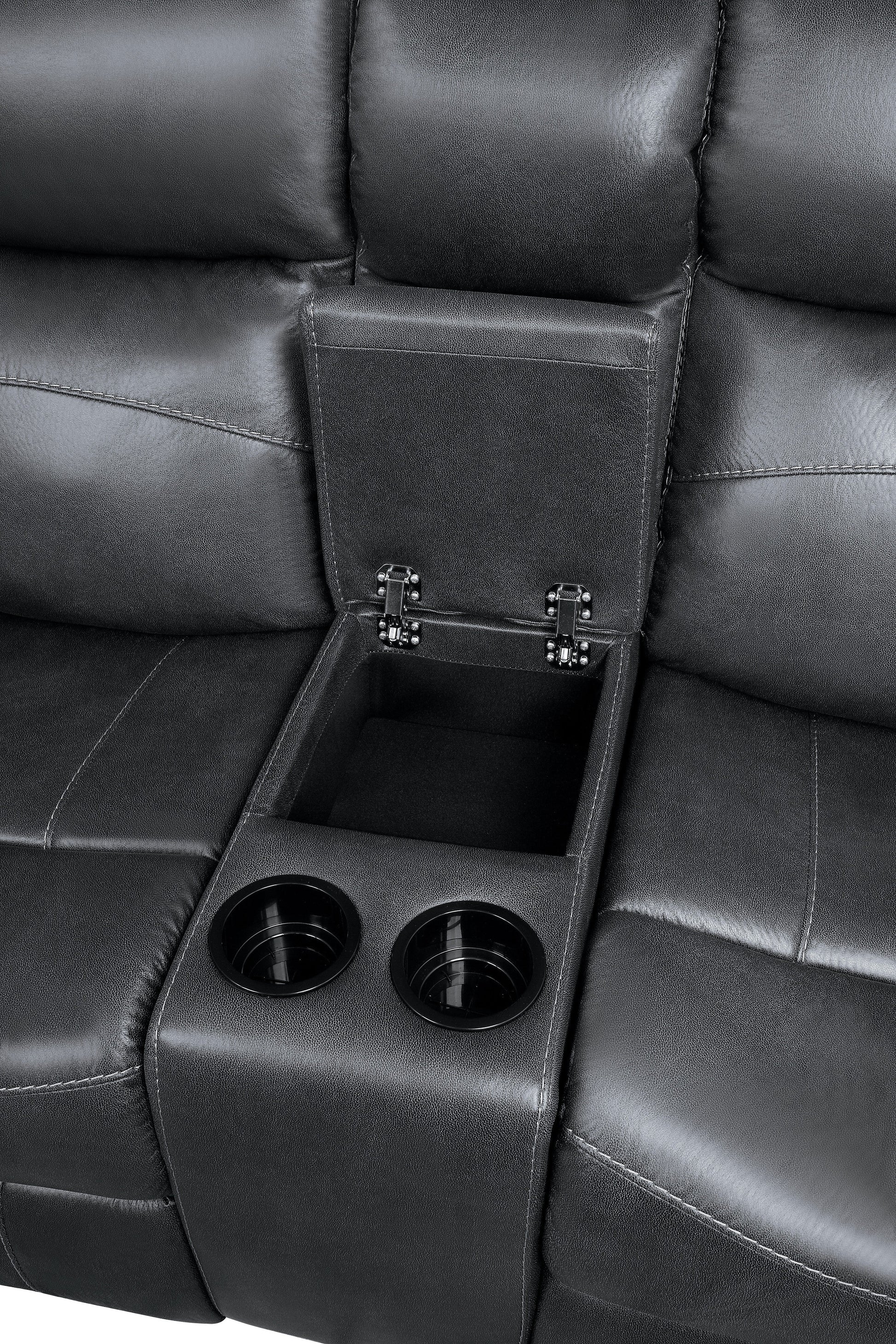 - 9990GY-3 Double Lay Flat Reclining Sofa with Center Drop-Down Cup Holders 80.25 x 37 x 41H