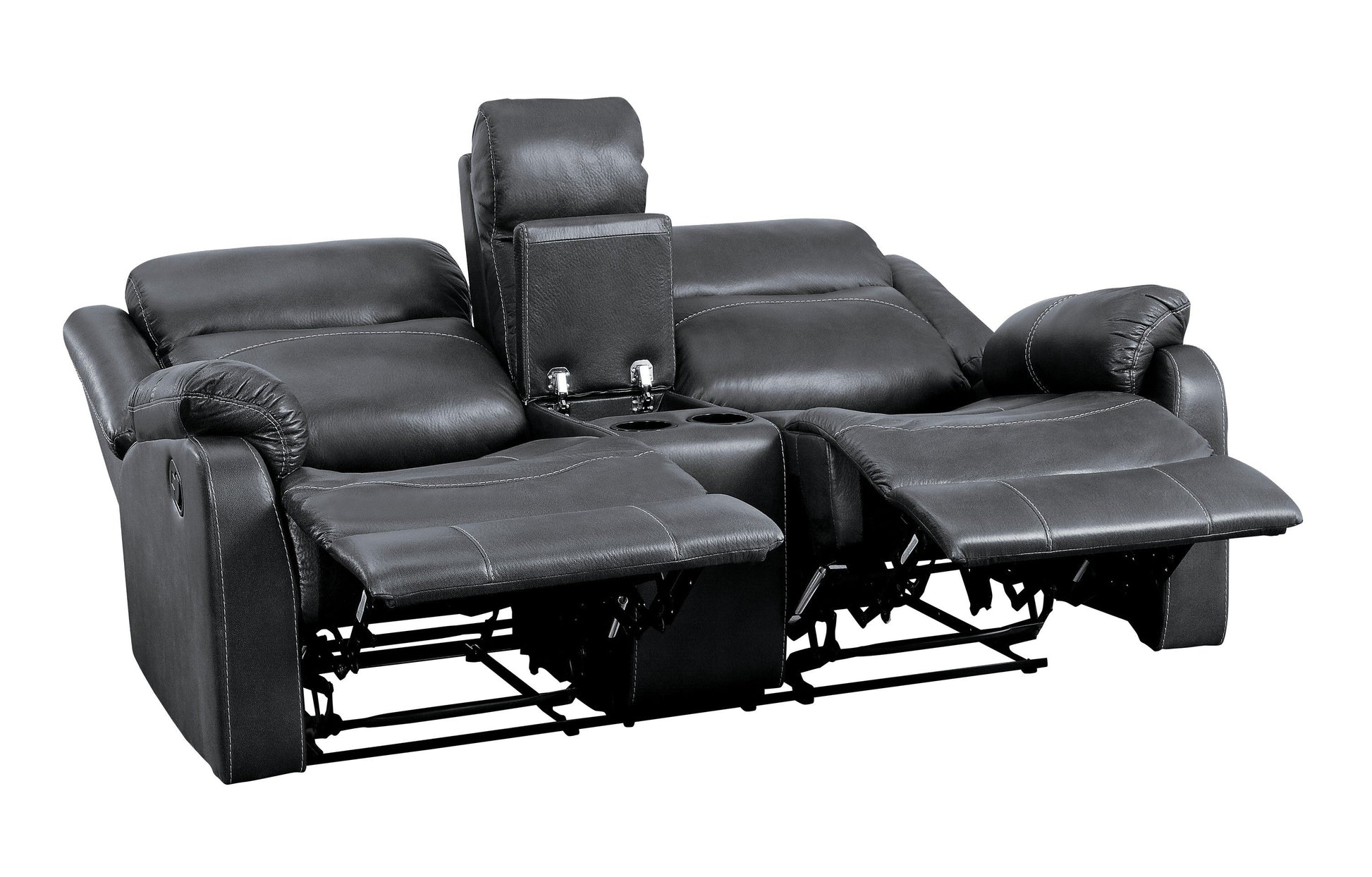 - 9990GY-2 Double Lay Flat Reclining Love Seat with Center Console 70 x 37 x 41H
